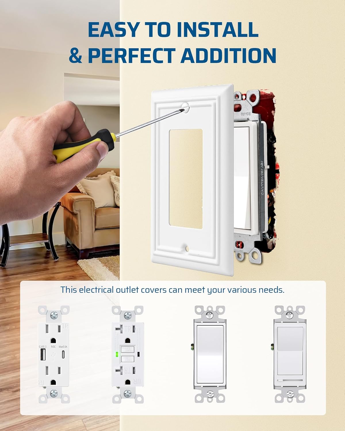 - [Hassle- free Installation] Includes screws for hassle-free and convenient self-installation; with just a simple screwdriver, easily set up light switch covers in minutes, saving you time and effort