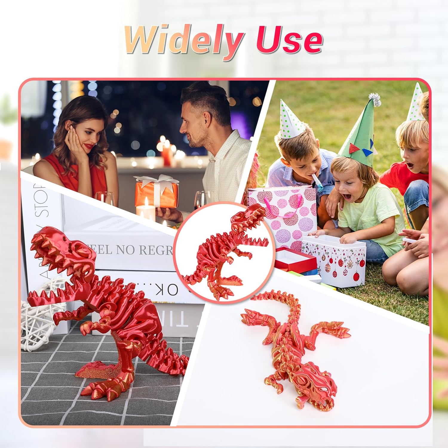 - Applications: 3D printed dinosaur is perfect for home decor, office decor, desktop or car decor, or even as a stress-relief toy, also be used for dinosaur toy collections or novelty decor, this poseable Tyrannosaurus Rex adds a touch of mystery to your home space