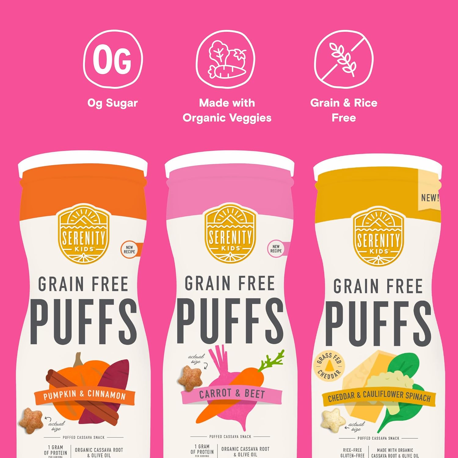 - PARENT APPROVED TRUST: You can count on the Serenity Kids puffs for grain free puffs & organic baby puffs needs. These allergen free veggies organic puffs are made with ingredients you can trust, making feeding super easy. Ideal puff snacks for toddlers