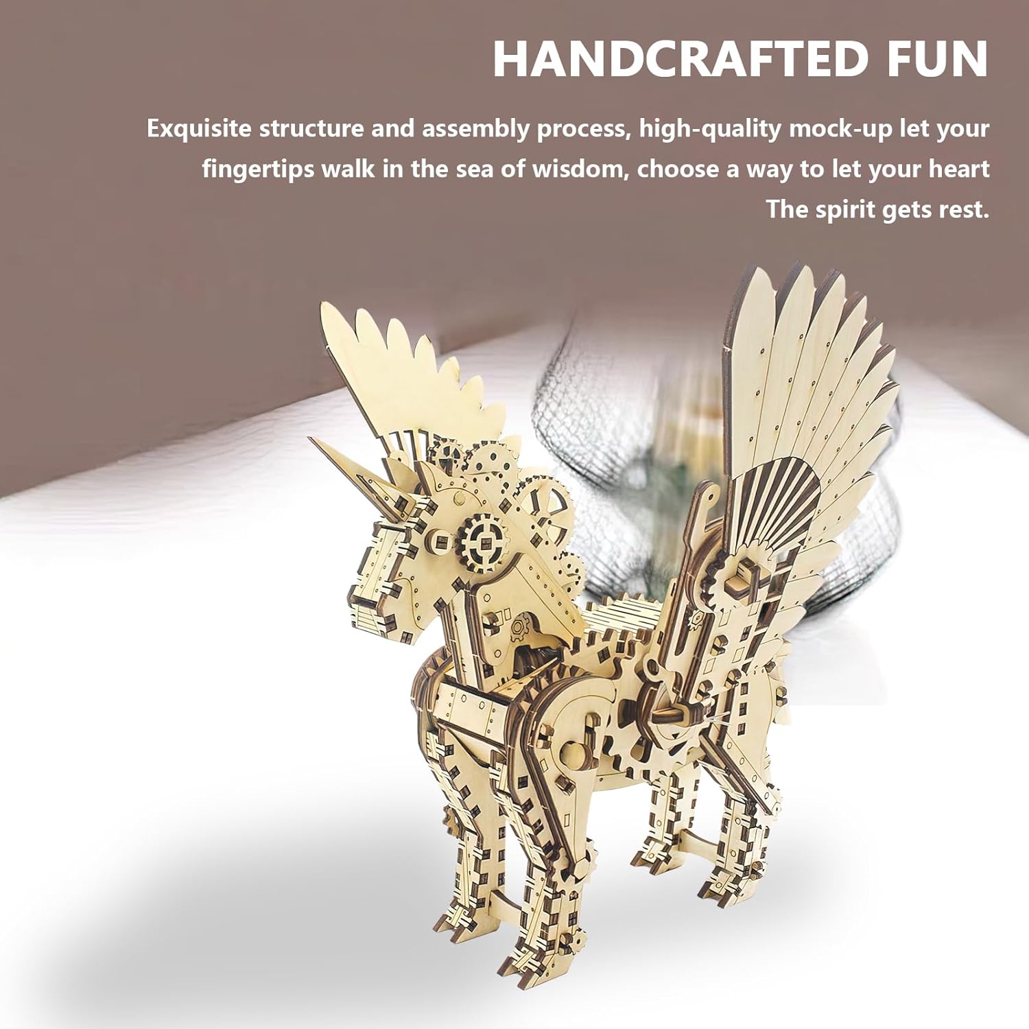 - Enchanting Unicorn Mechanical Puzzle: Enter a world of whimsy and wonder with our 3D wooden unicorn mechanical horse puzzle. This captivating puzzle features intricate details and a charming design that will delight kids of all ages.