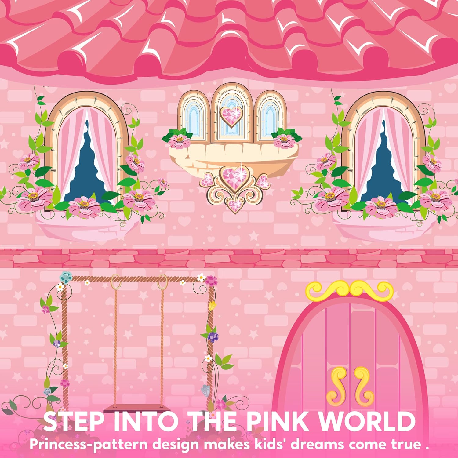 - Comprehensive Set: This castle-themed tent comes as a complete package, comprising a graphic tent adorned with castle motifs, a convenient carrying tote, roof anchors, 4 sturdy poles, and floor anchors. This comprehensive set is portable and lightweight, facilitating easy installation both indoors and outdoors.