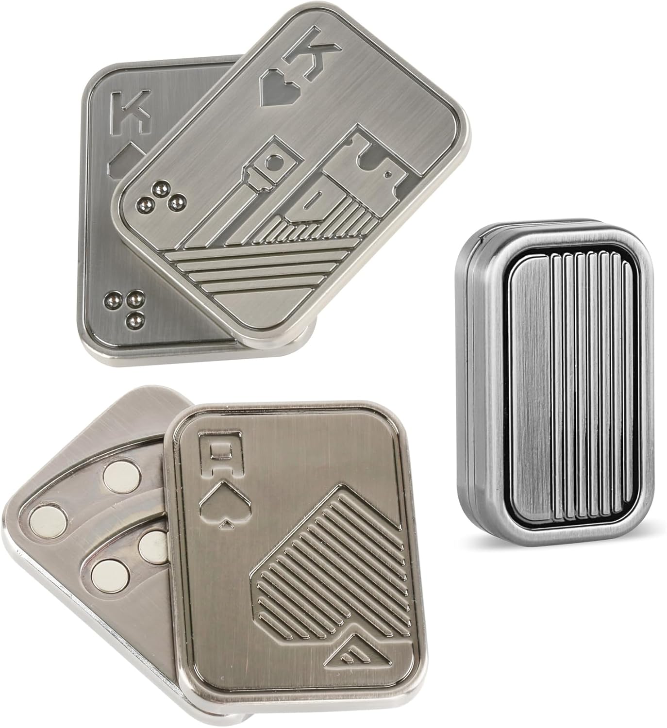 3 Pack Fidget Toys Adults Magnetic Fidget Slider Metal Fidget Toys Magnetic Fidget Slider Toys EDC Fidget Toys for Adults Anxiety Stress Relief Office Desk Toys(Metal Poker K+A +CP3 Silver)