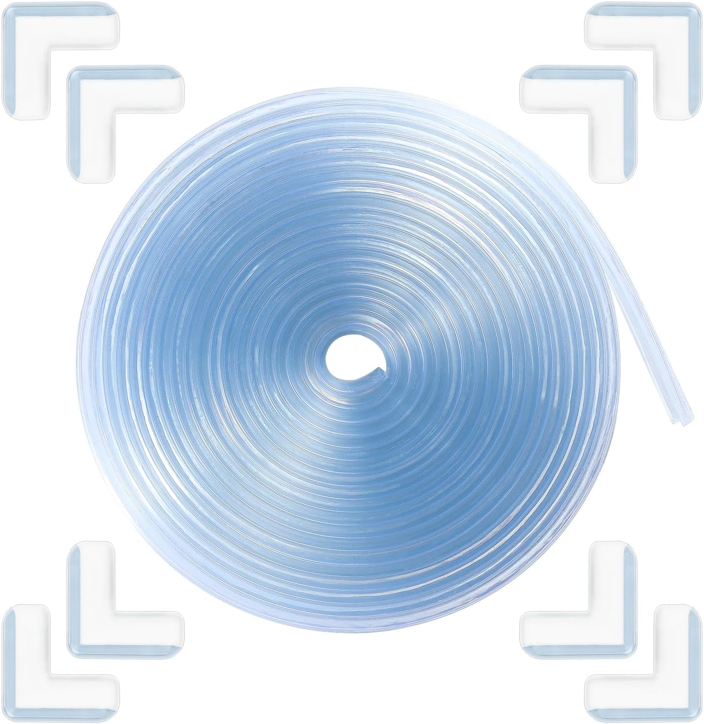 - Package Include: Our product includes a 5.5-meter roll of soft and flexible furniture edge protection (measuring 0.8in x 0.8in) and 8 L-shaped corner guards, all equipped with pre-applied adhesive for easy installation. The edge protection can be easily cut to the desired length for a custom fit.