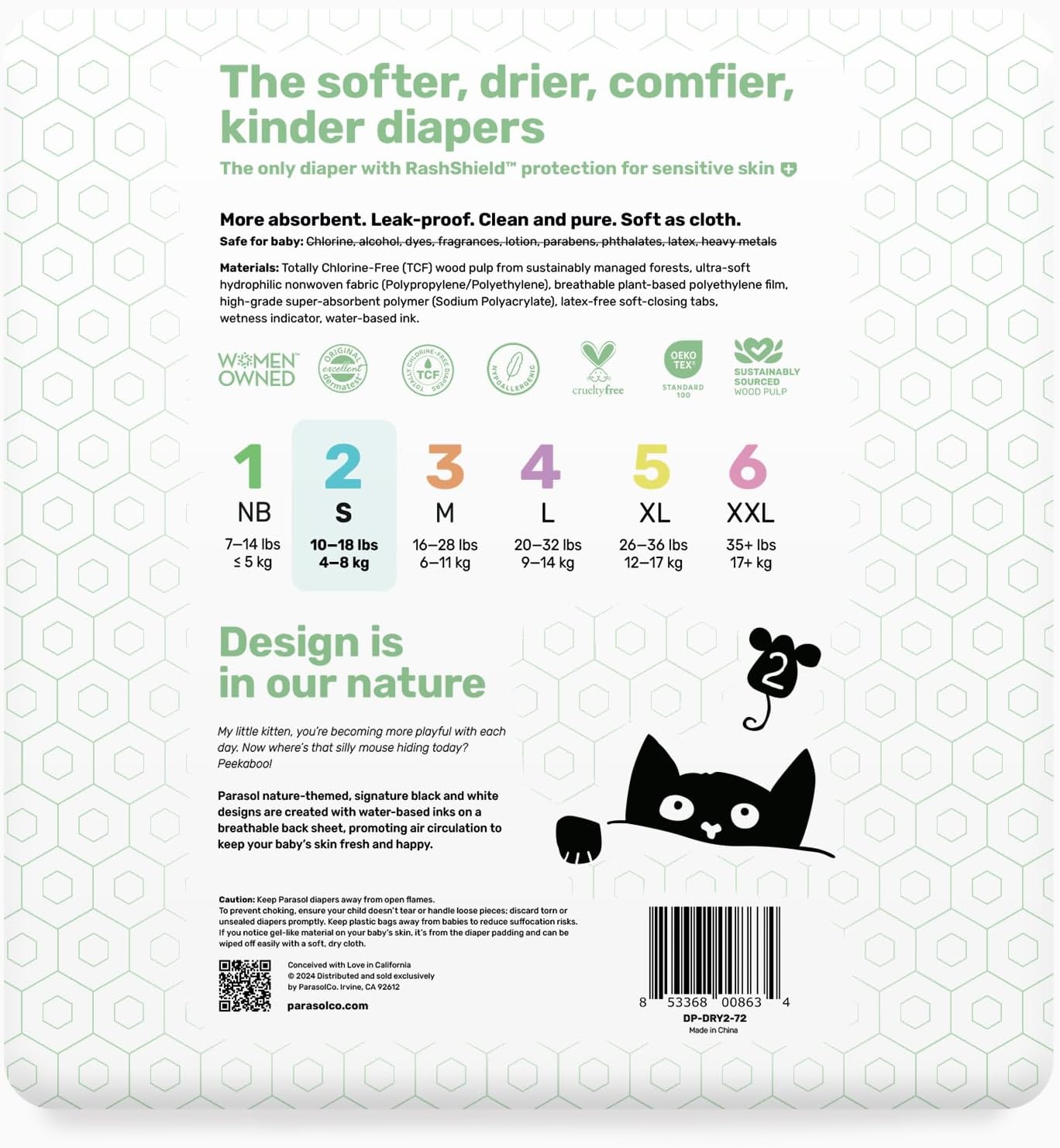 - SAFE AND CLEAN: Parasol diapers are non-toxic and free from irritants such as chlorine, alcohol, dyes, chemicals, fragrances, lotions, parabens, phthalates, latex, heavy metals and more.