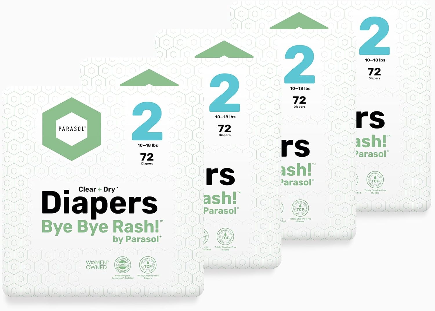 Parasol Clear+Dry Disposable Diapers, RashShield Protection and Leak-Control Fit, Hypoallergenic Diapers, Size 2 (10-18 lbs), 288 Count