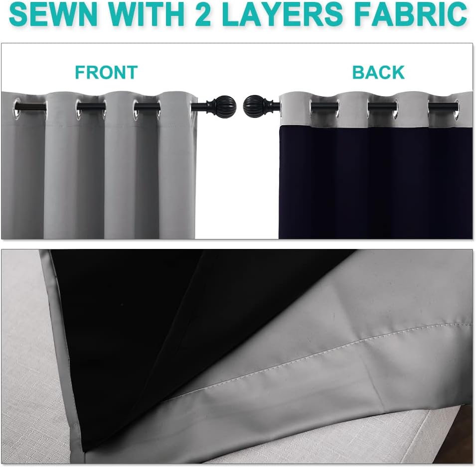 - 100% BLACKOUT: The real blackout curtains on the market. Sew in black liner backing makes the drapes thick enough to completely keep out the 100% SUNLIGHT and UV RAY. The greatest benefit is to offer you a real dark environment, bringing you a good night's sleep during the day.