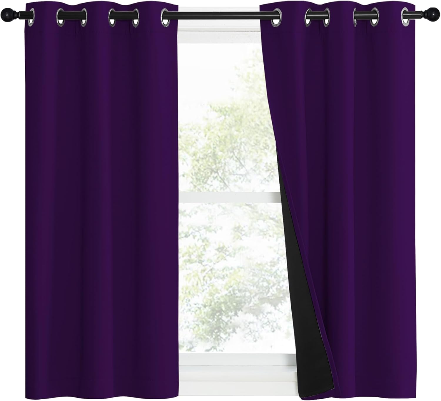NICETOWN 100% Blackout Curtains with Black Liner Backing, Thermal Insulated Curtains for Living Room, Noise Reducing Drapes, Royal Purple, 37" Wide x 50" Long Per Panel, Set of 2 Panels