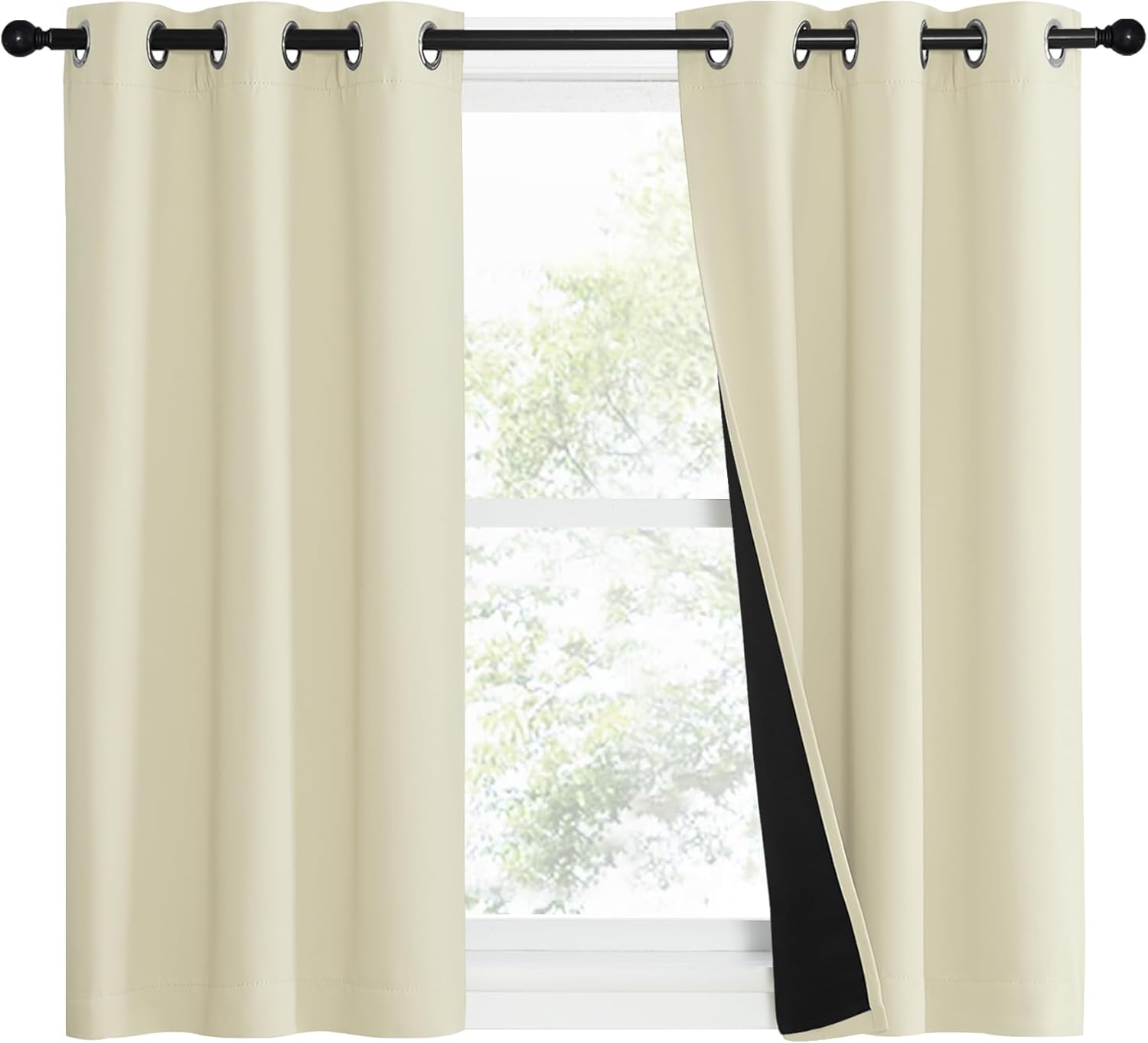 NICETOWN Living Room Completely Shaded Draperies, Privacy Protection & Noise Reducing Ring Top Drapes, Black Lined Insulated Window Treatment Curtain Panels (Beige, 2 Pieces, W37 x L40)