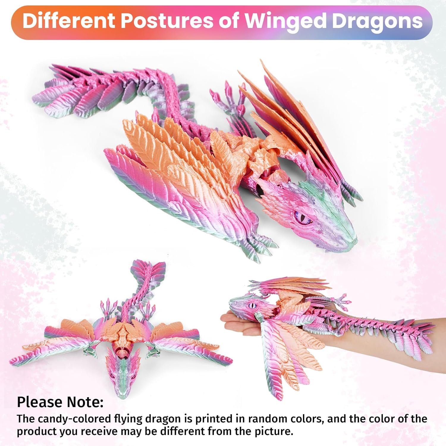 - ๐ใExquisite Designใ: This 3D printed animal is a winged dragon with exquisite design and details that make it come alive. Its adjustable wing hinge design allows it to be posed in a variety of different poses, adding to the fun of play.