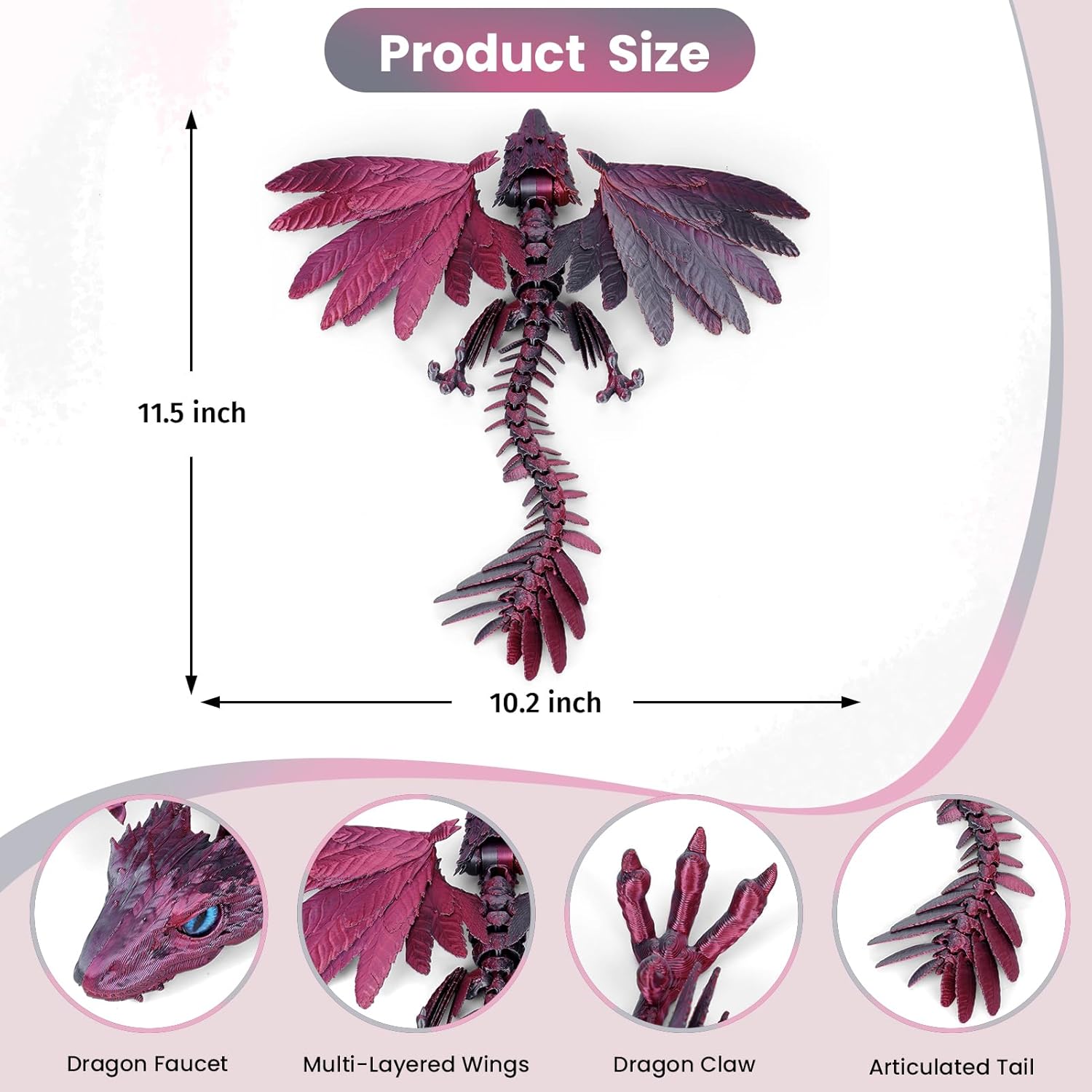 - ๐ใExquisite Designใ: This 3D printed animal is a winged dragon with exquisite design and details that make it come alive. Its adjustable wing hinge design allows it to be posed in a variety of different poses, adding to the fun of play.