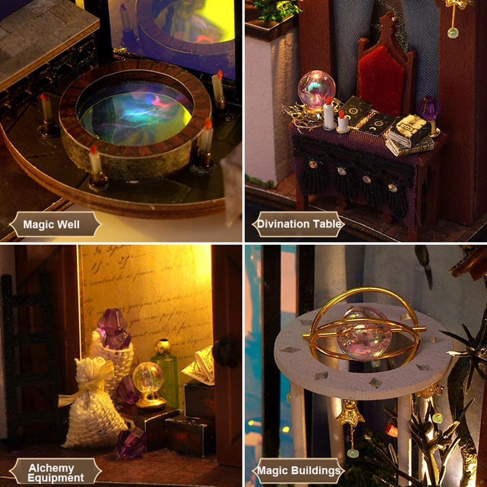 WYD DIY Bookstand Kit British Magic House Street View Architectural Model Handmade Desk Insert Decoration Wooden Mini Doll House Youth and Adult Best Gift