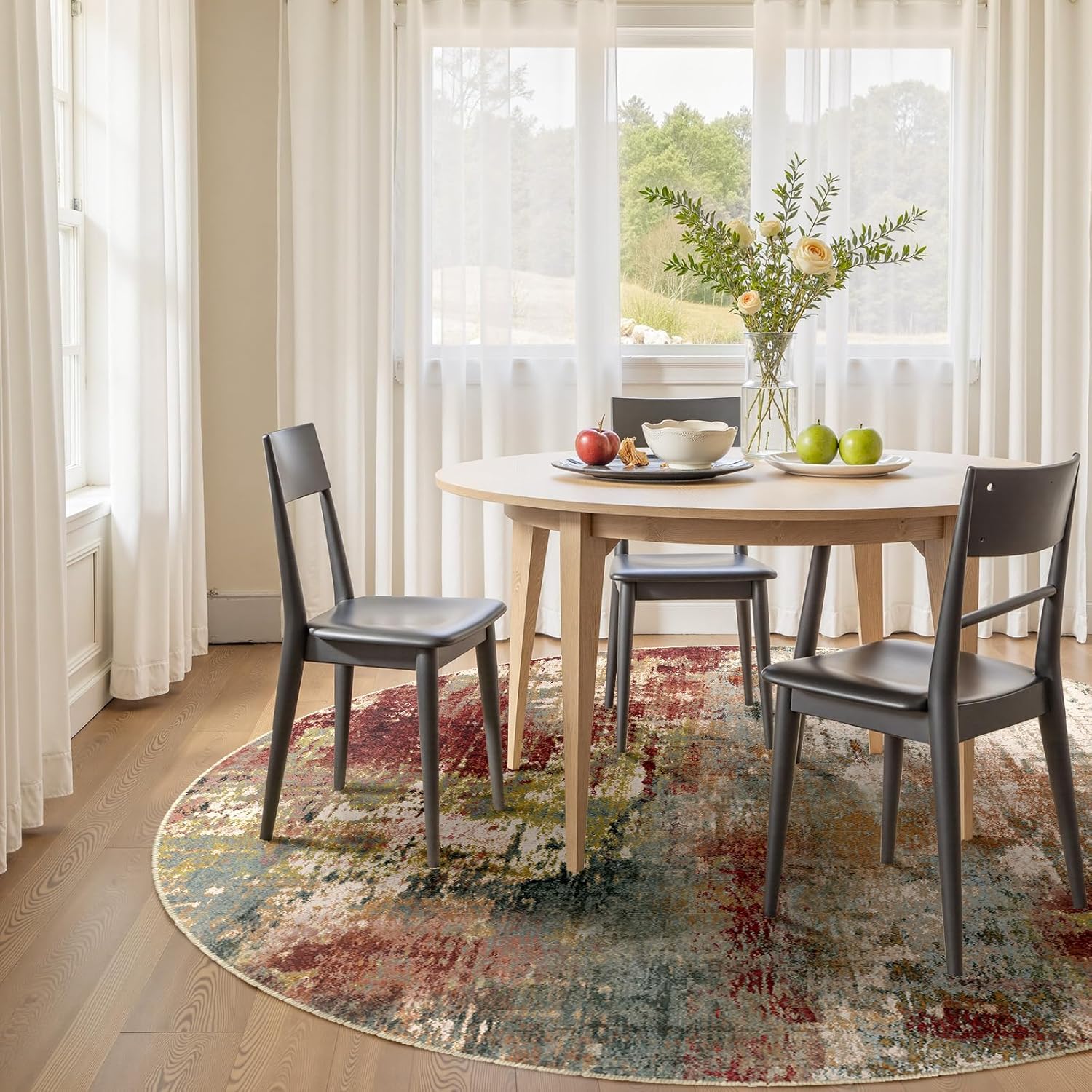 Washable Area Rugs 6ft Non-Slip Modern Abstract Soft for Living Room Entryway Bedroom Nursery, Print Pattern, Brown Rust Red Multi
