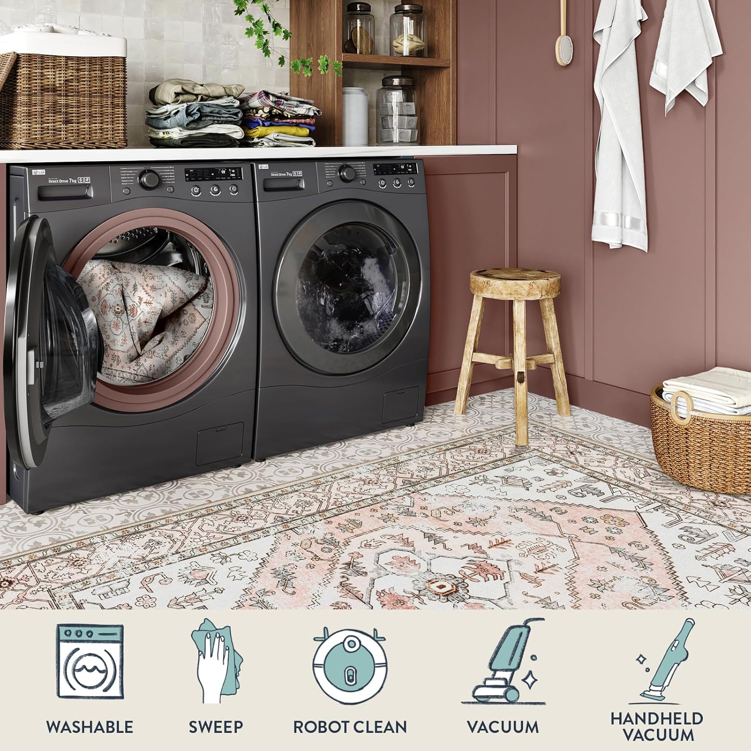 - 【Machine Washable Rugs】:Lahome washable area rugs are created to make maintenance a breeze. Not easy to change its shape after washing. Use a handheld small vacuum cleaner to remove the dust or hair for daily care. Wipes up spills on the surface of the rug directly. Machine wash with cold water on gentle cycle. Do Not Use Chlorine Or Bleach