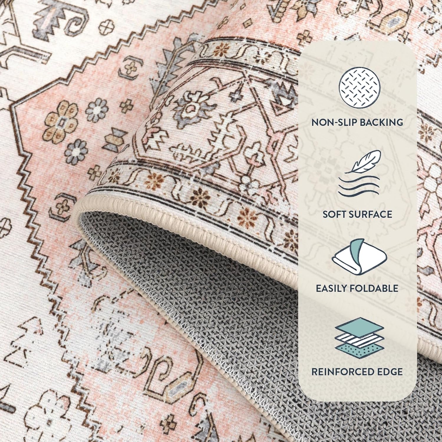 - 【Non-Slip & Safe】:The bedroom rug with rubber backing are coated with a TPR backing to help the rug stay in place. Sufficient grip to prevent dangerous slips for the elderly and children. Non-slip rug also protect laminate and hardwood floors