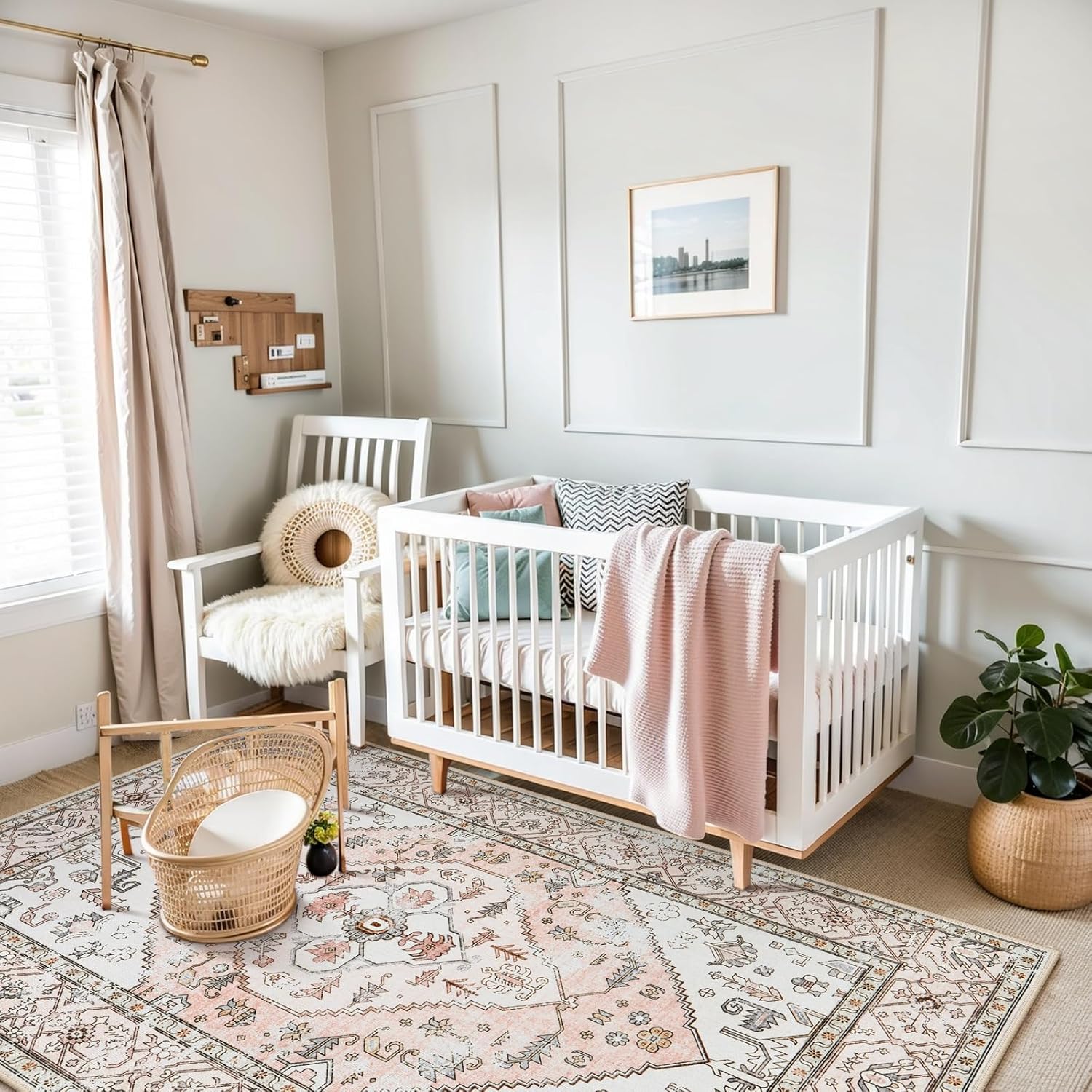 Lahome Boho Washable Living Room Area Rug - 3x5 Small Pink Rugs for Bedroom Non-Slip Throw Nursery Kids Room Rug, Vintagel Print Carpet Rug for Kitchen Office Bathroom Laundry Room (Pink, 3'x5')