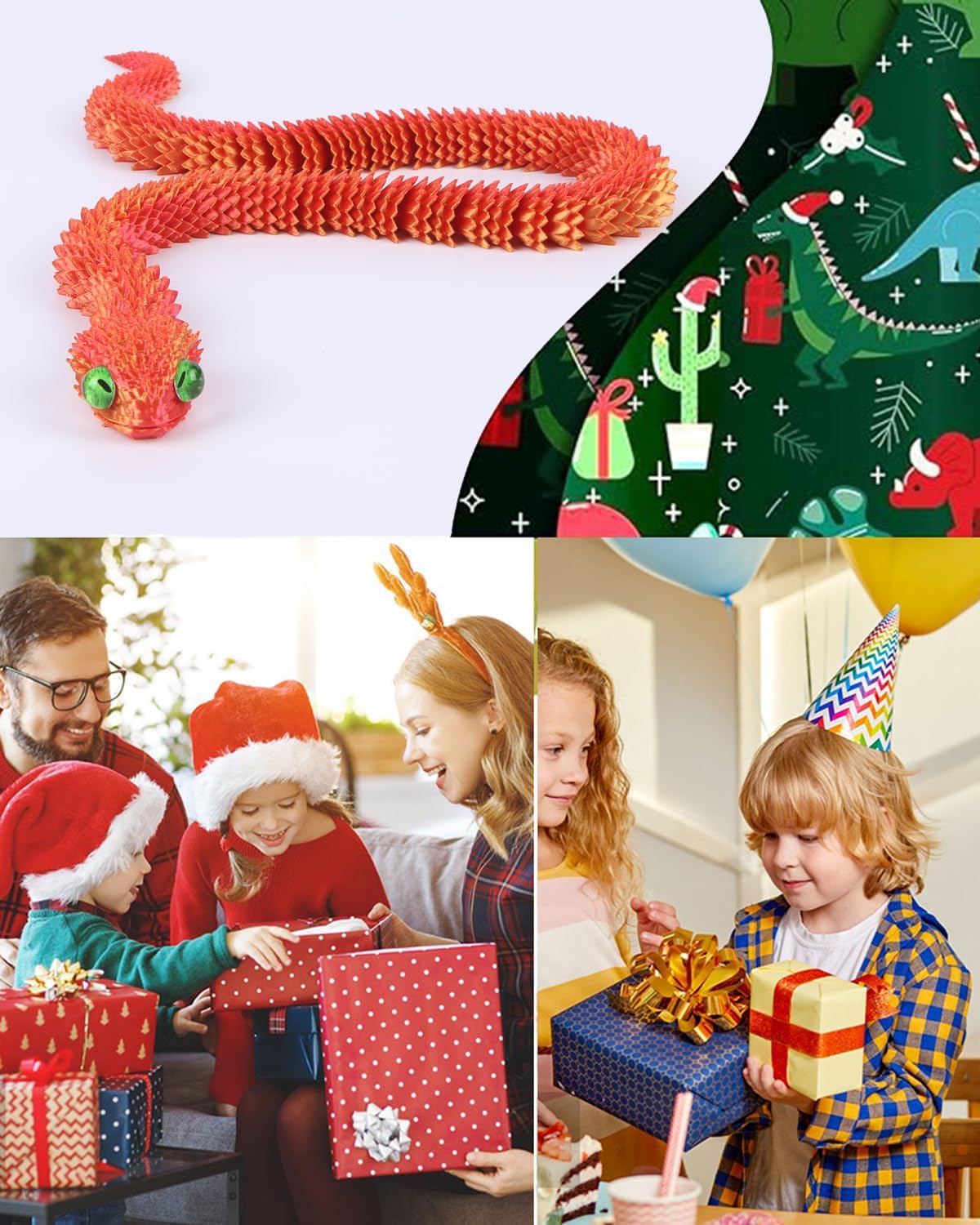 3D Printed Animals-Snake Viper, 24 in Surprise Mystery Snake Fidget Toy Creative Toy 3D Printed Articulated Snake Collectibles Home Office Executive Desk Decor (Red Gold)
