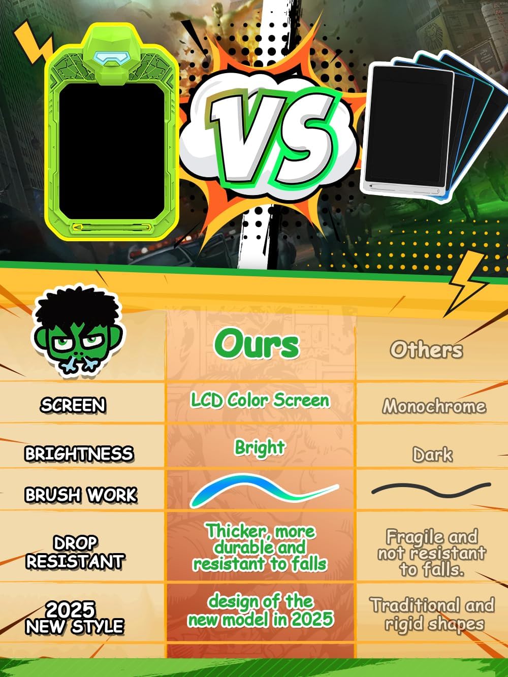 - 【With a cool and stylish design】 featuring our iconic heroes like Spider-Man, Captain M, Mecha Heroes in action, and the mighty Hulk, this toy is an ideal learning companion for boys and girls aged 3, 4, 5, and 6. It serves not only as a graffiti board brimming with creative inspiration but also as a painting board full of endless fun.