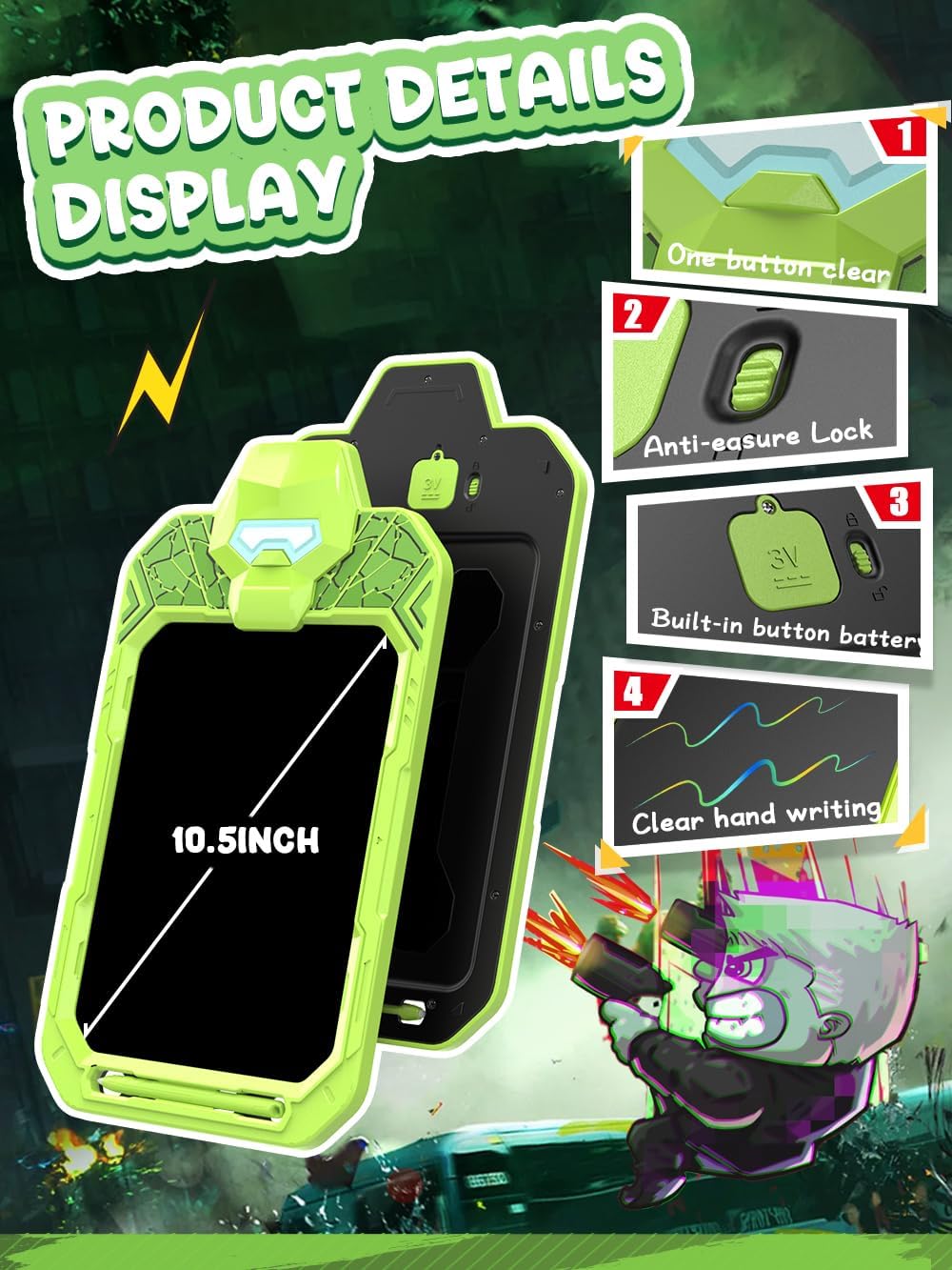 LCD Writing Tablet Doodle Board 10 Inch, Colorful Drawing Pad, Electronic Drawing Tablet, Drawing Pads,Travel Gifts for Kids Ages 3 4 5 6 7 8 Year Old Girls Boys (Powerful Warrior)