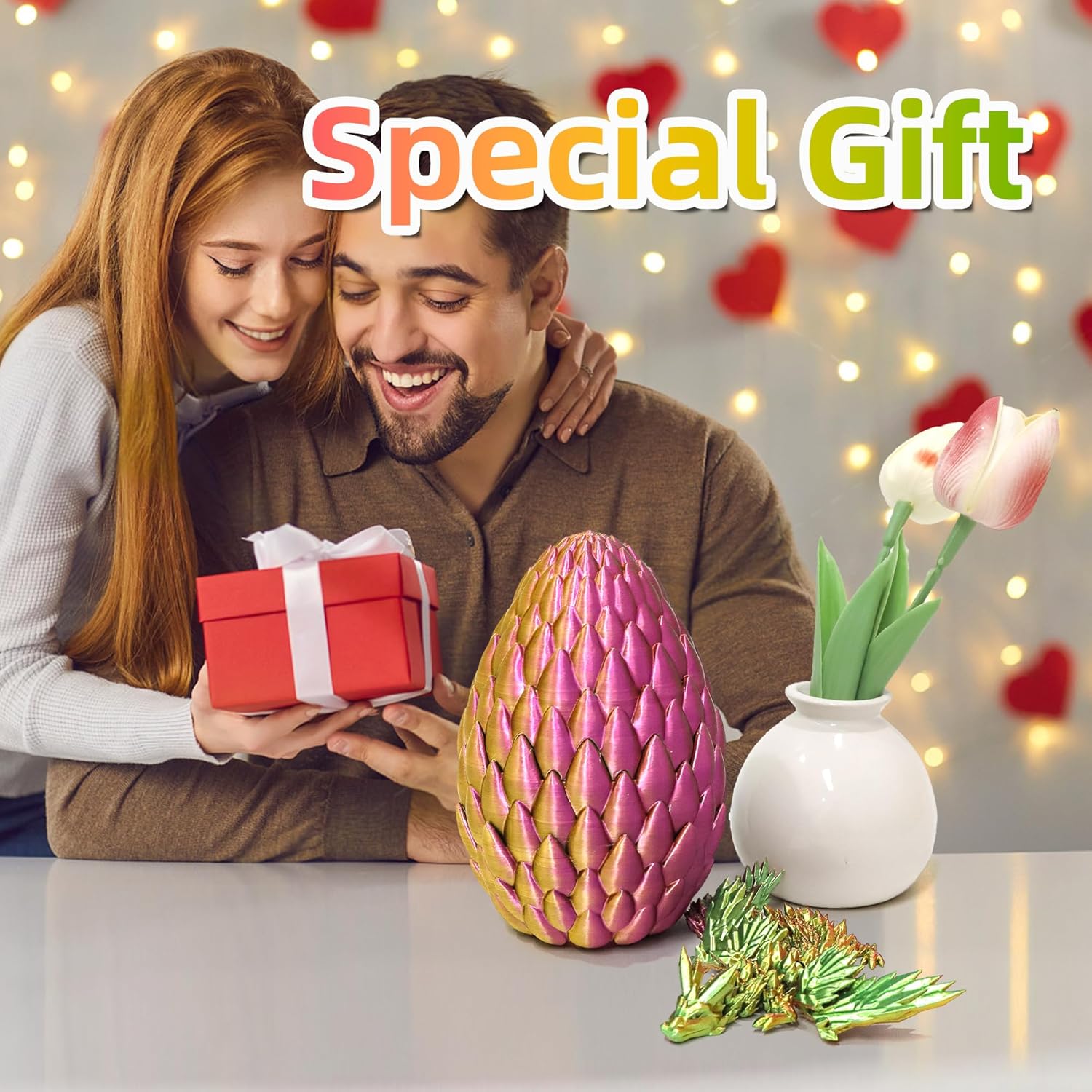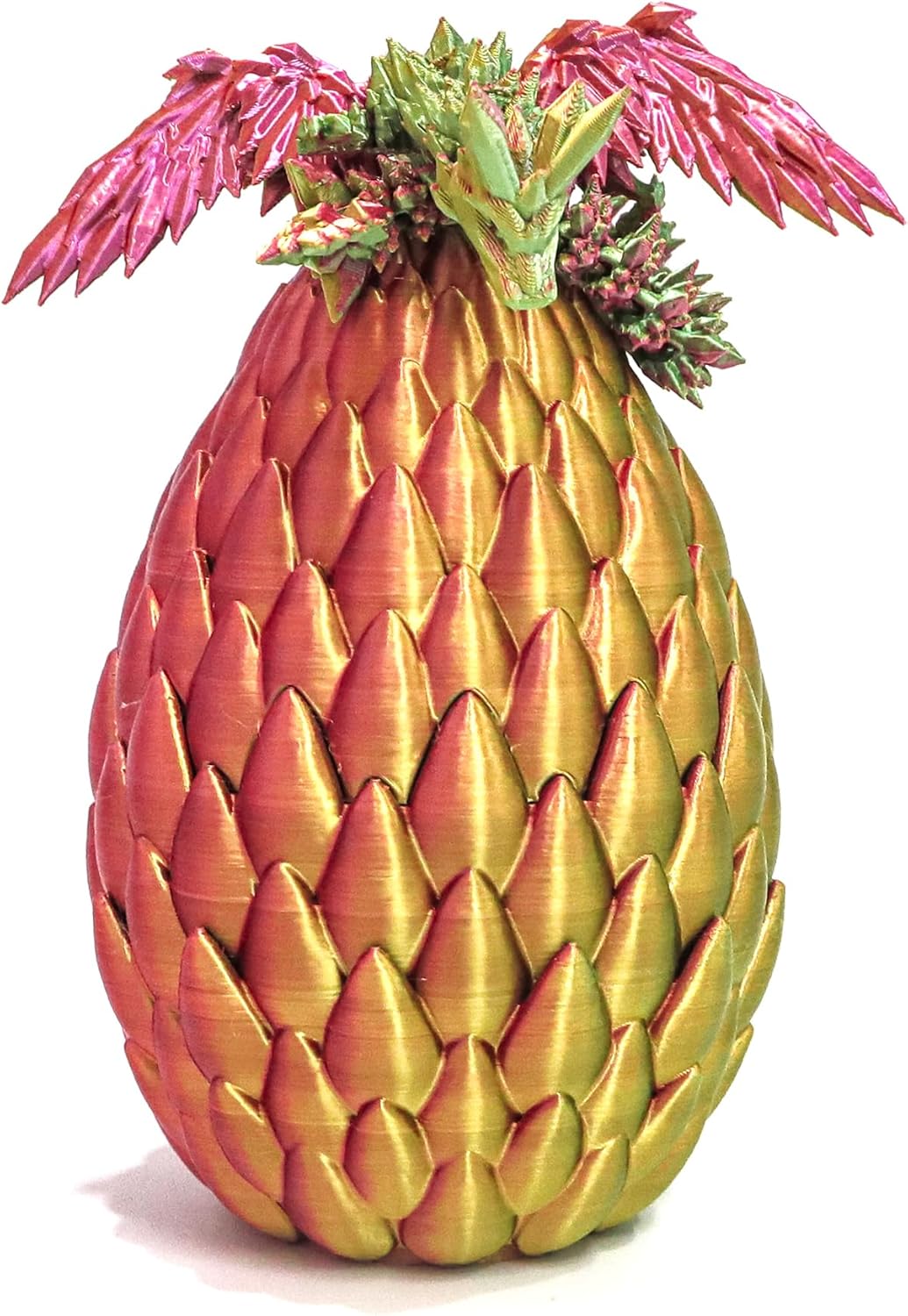 3D Printed Flying Dragon in Egg - 3 Colors Surprise Egg with Flexible Winged Dragon Inside, Mystery Beautiful Fidget Toy, Birthday Gift, Desk Figure Decor (Green Pink Gold)