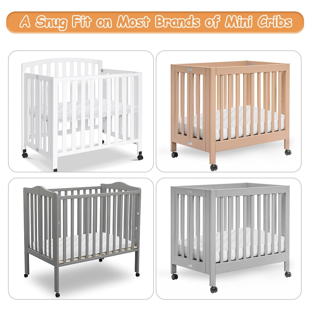 - FLEXIBLE FIT - Measures 38''x24'', designed specifically to fit standard mini crib of most brands. Deep pockets make sure the mattress cover universal fit mattress up to 5 inch thick. 2 pack mini crib mattress pads are much more affordable and make it more convenient for parents to change them at regular intervals.