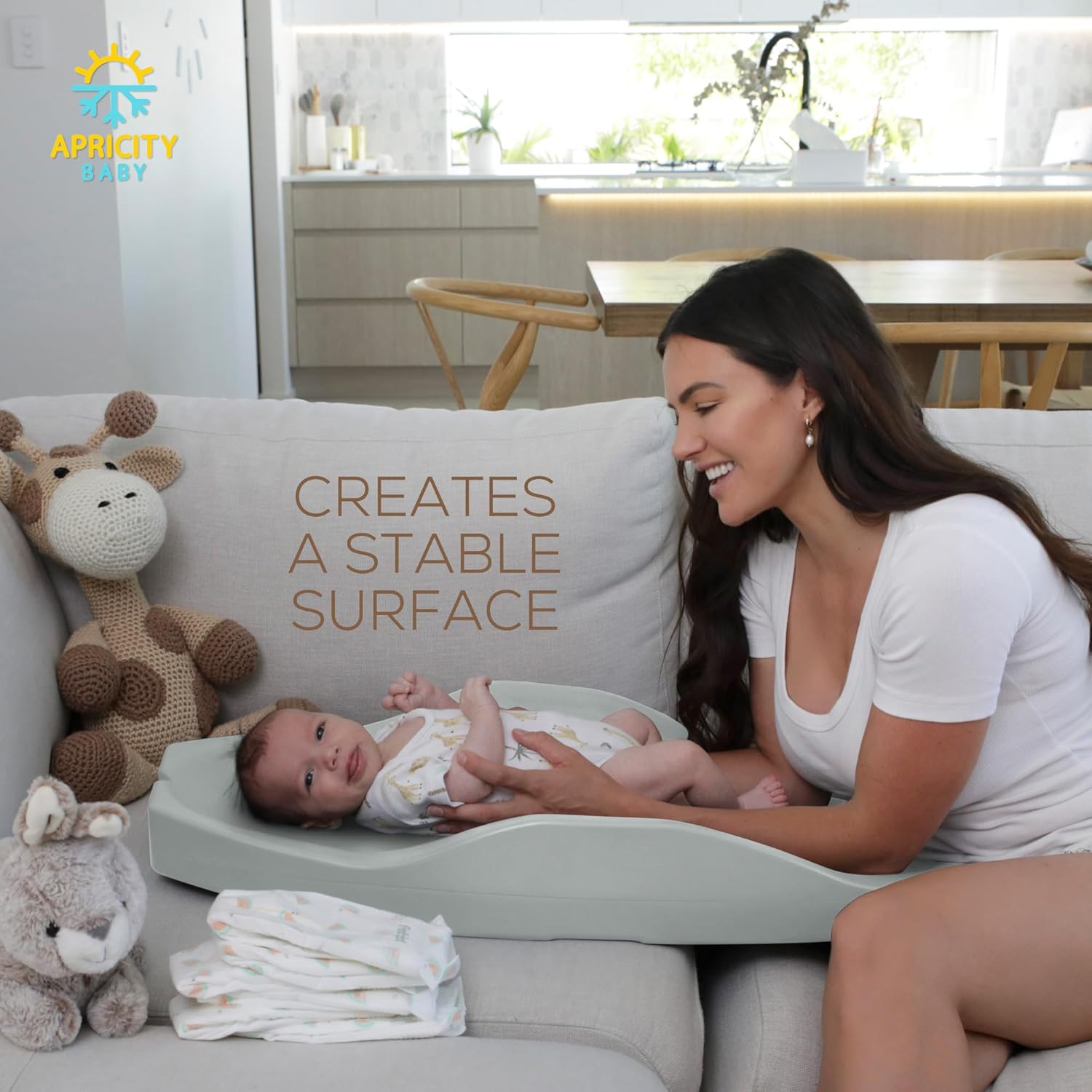 Apricity Baby Changing Pod -Sage- Waterproof Non-Slip Changing Pad Easy-to-Clean Diaper Changing Station for Dresser Tops Large Portable Wipeable Changing Pad for Newborns to Toddlers Diaper Changer