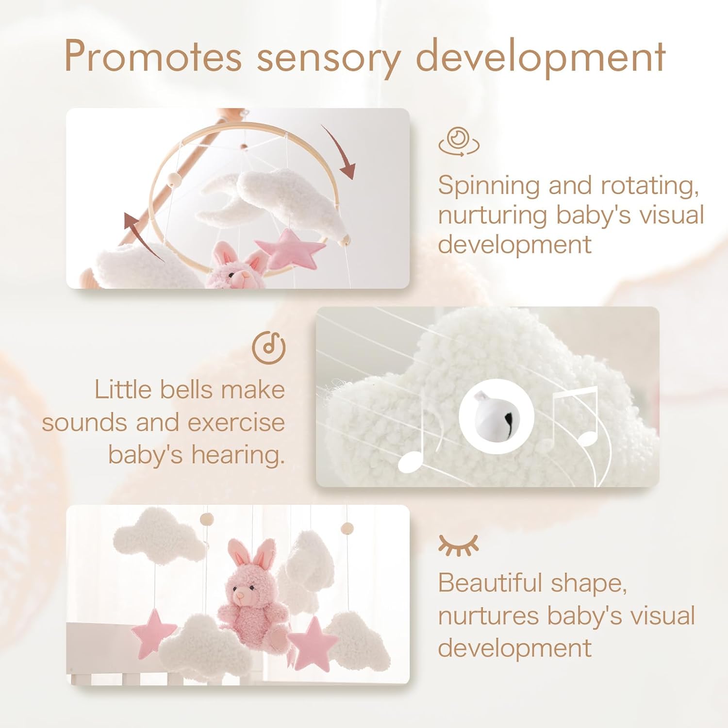 - Teddy Velvet Nursery Mobile:Baby mobile for crib can blend into the nursery design of your choice. The white moon and clouds, pink stars, and pink bunny will be focal points in your neutral nursery,We share your goal to making sure your baby is exposed to something nice and safe from birth