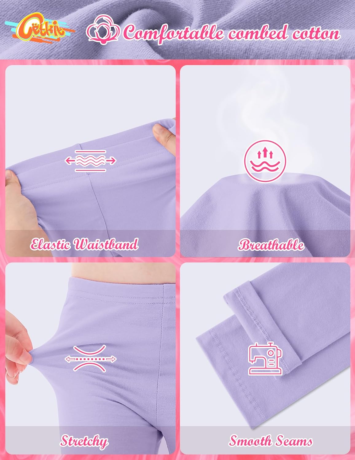 - 【High-Quality Kids Leggings】 These girls' leggings are made of 94% polyester and 6% spandex. The fabric is stretchy, ultra-soft, and breathable, making these leggins very comfortable and flexible. All leggings are made from premium four-way stretch fabric, with an elastic band sewn into the waistband, which lies flat on the waist for a comfortable and good fit.