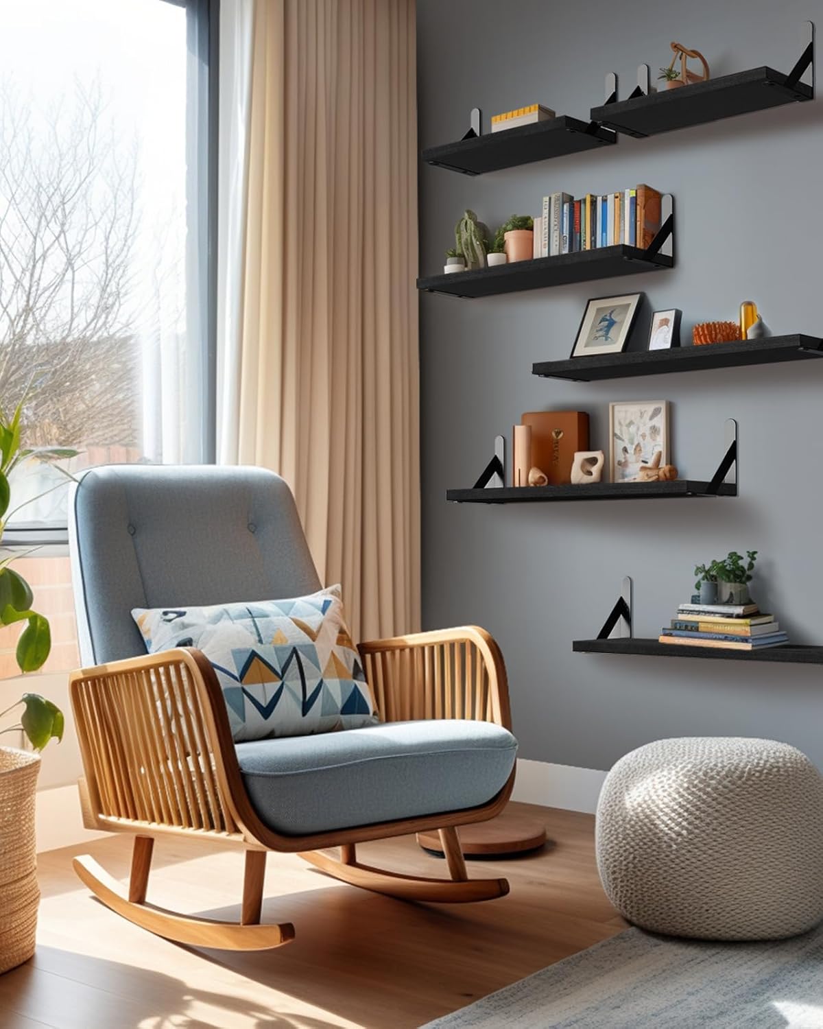 - Flexible Arrangement: Use all the shelves together in one room or in different places around the house. The larger shelves suit spaces like living rooms, while the smaller ones fit well in bedrooms and bathrooms.