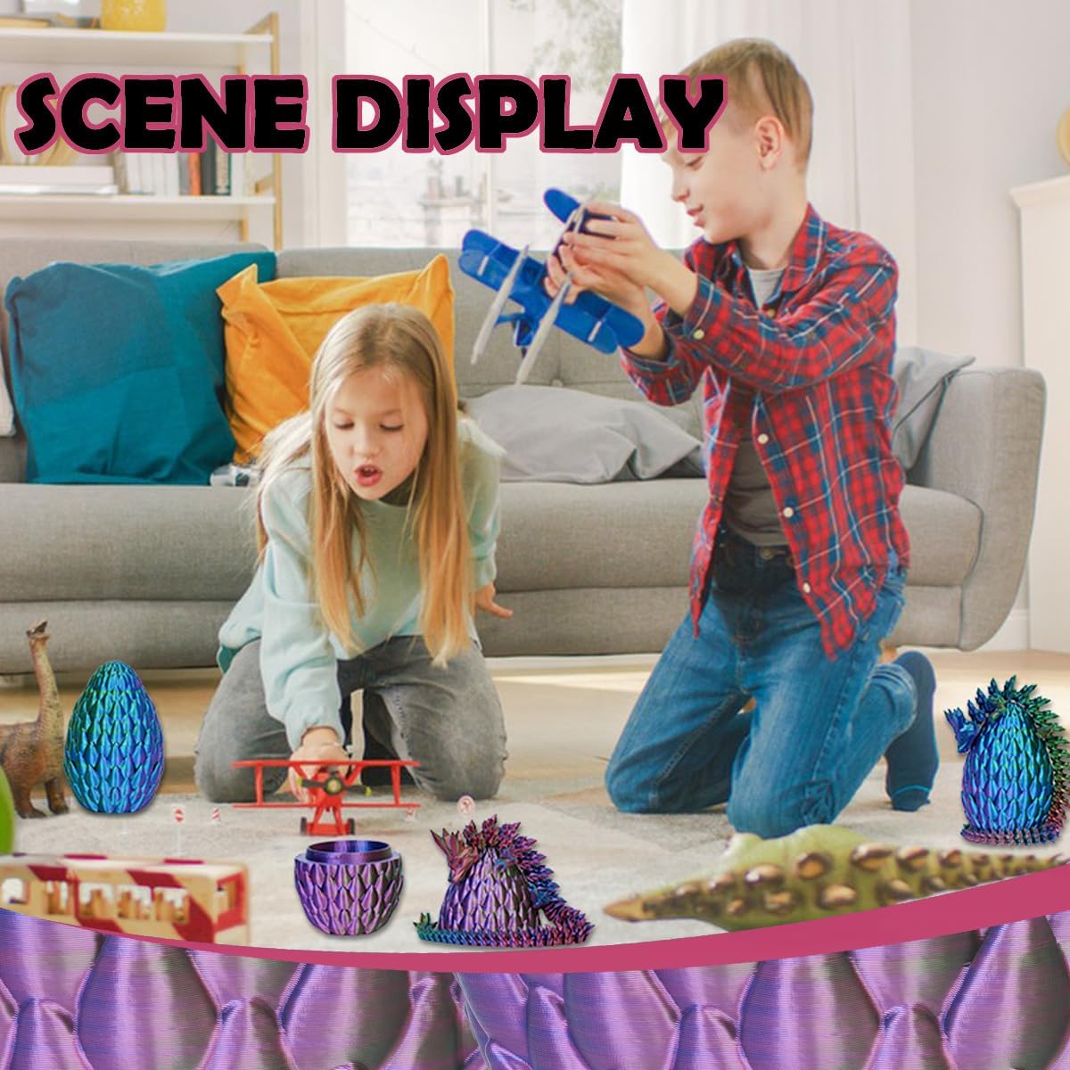 Dragon Eggs with Dragon Inside, 12In 3 Color Dazzle 3D Printed Dragon Egg Desktop Motion Toys, Executive Desk Articulated Dragon Toy, Home Office Decor