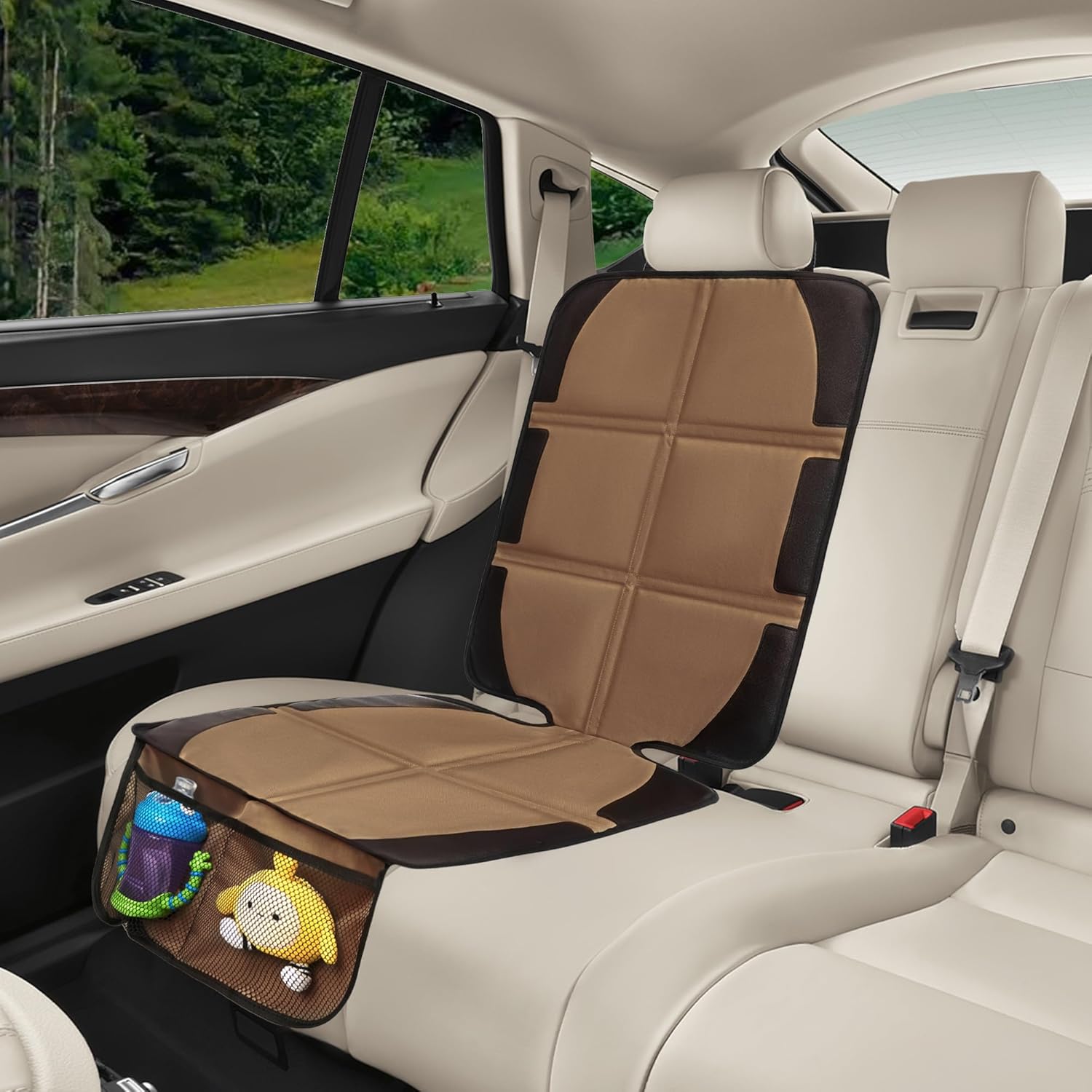 Car Seat Protector, 2 Pack Baby CarSeat Covers with Mesh Pockets & Non-Slip Backing 600D Durable Seat Protectors Under Car Seat for Baby (Black & Brown, Large)