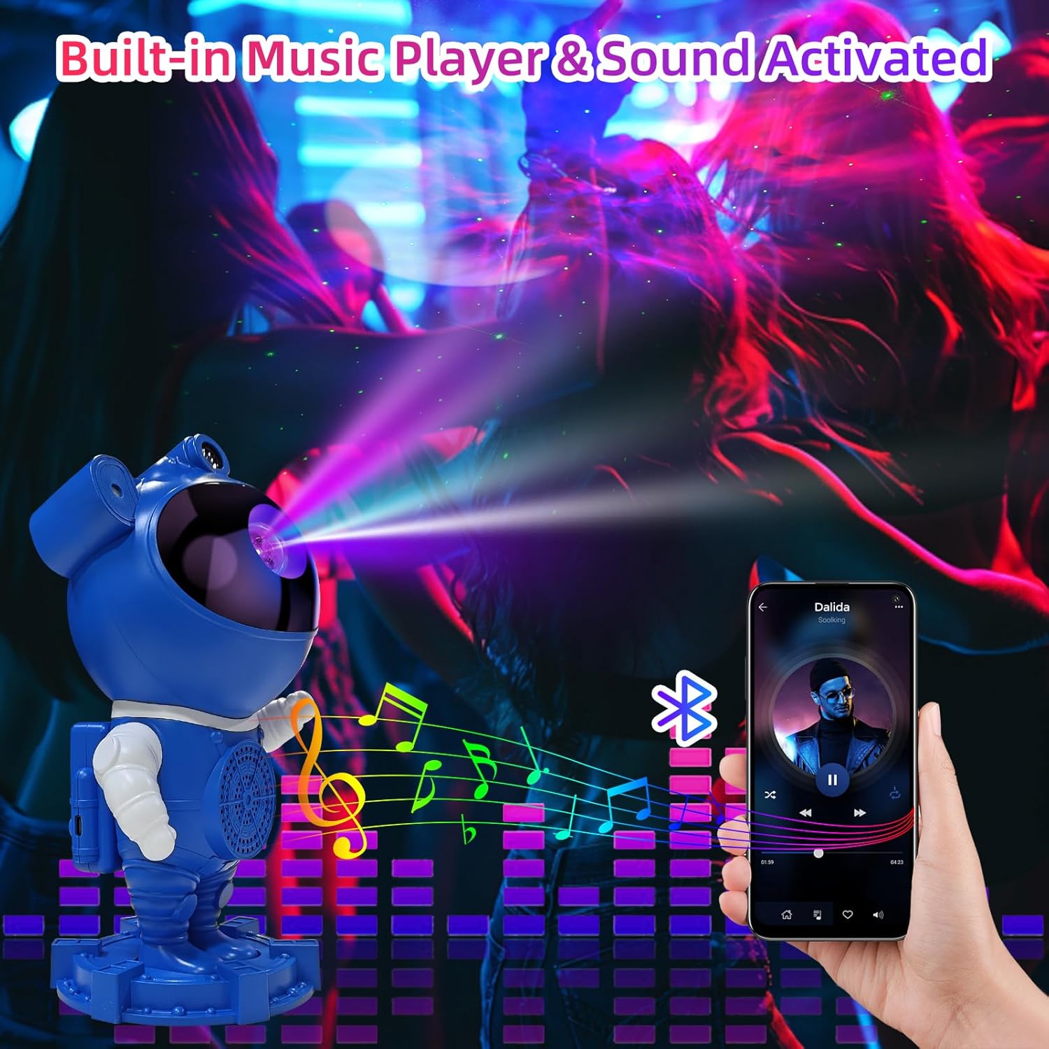 Astronaut Galaxy Projector Night Light for Kids Room,Bedroom Decoration, LED Lights, Star Projector with Nebula Moon, Bluetooth, White Noise, Remote Control