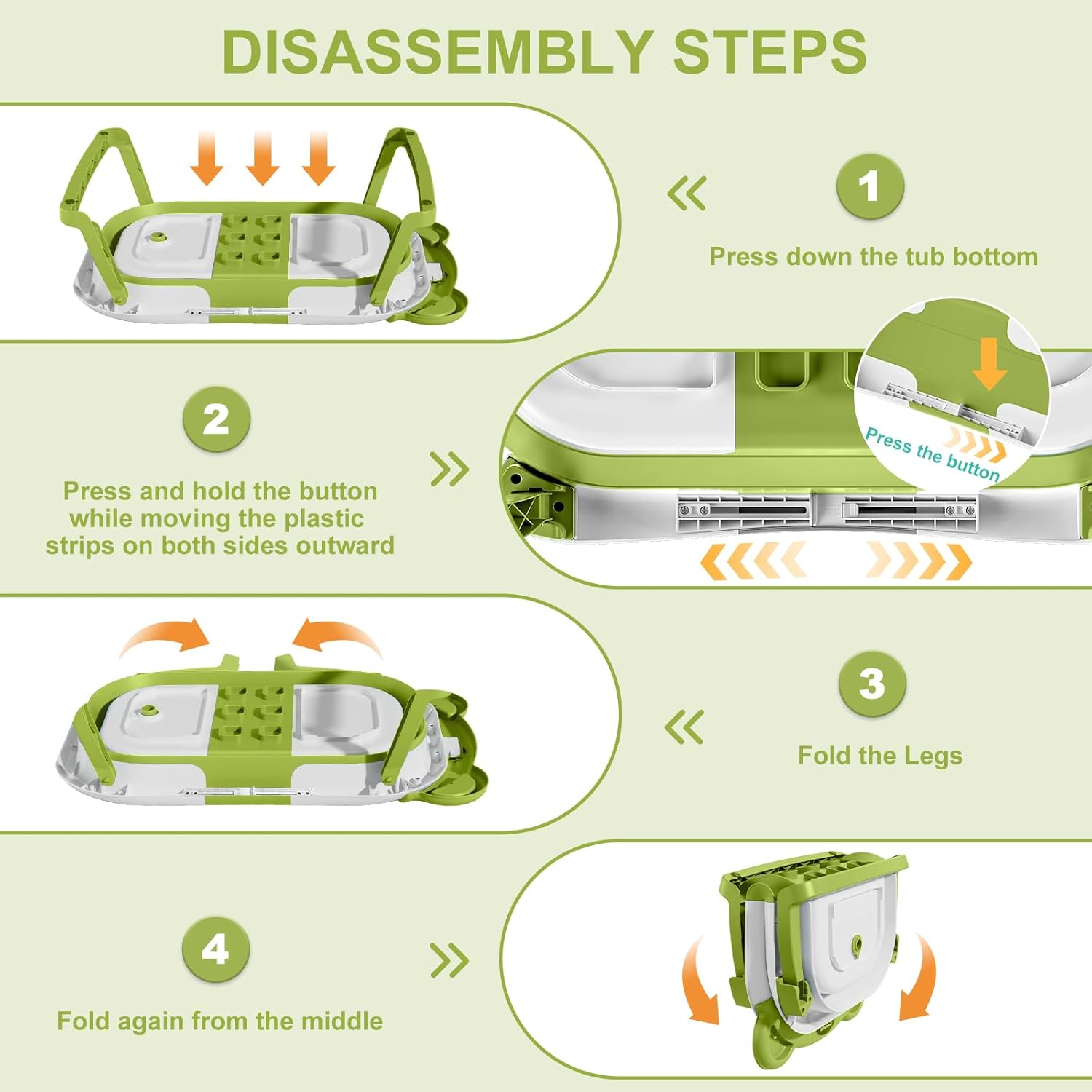 - 【Double-Fold Collapsible Design】Our upgraded baby bath tub can be effortlessly folded in just two steps to a thickness of under 4 inches. It even folds in half, enabling convenient storage in any corner, making it a space-saving solution.