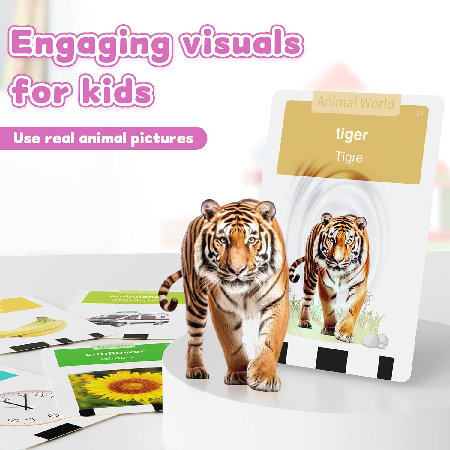 - Elevate your child's learning experience with the Toddler Bilingual Flash Card Machine – an innovative and interactive tool that perfectly combines fun and education! Designed for children ages 3 to 6, these cards use local pronunciations to read 288 English and Spanish vocabulary words, supporting bilingual language development. Each card features clear pronunciation and engaging visuals, making learning a joyful and immersive experience