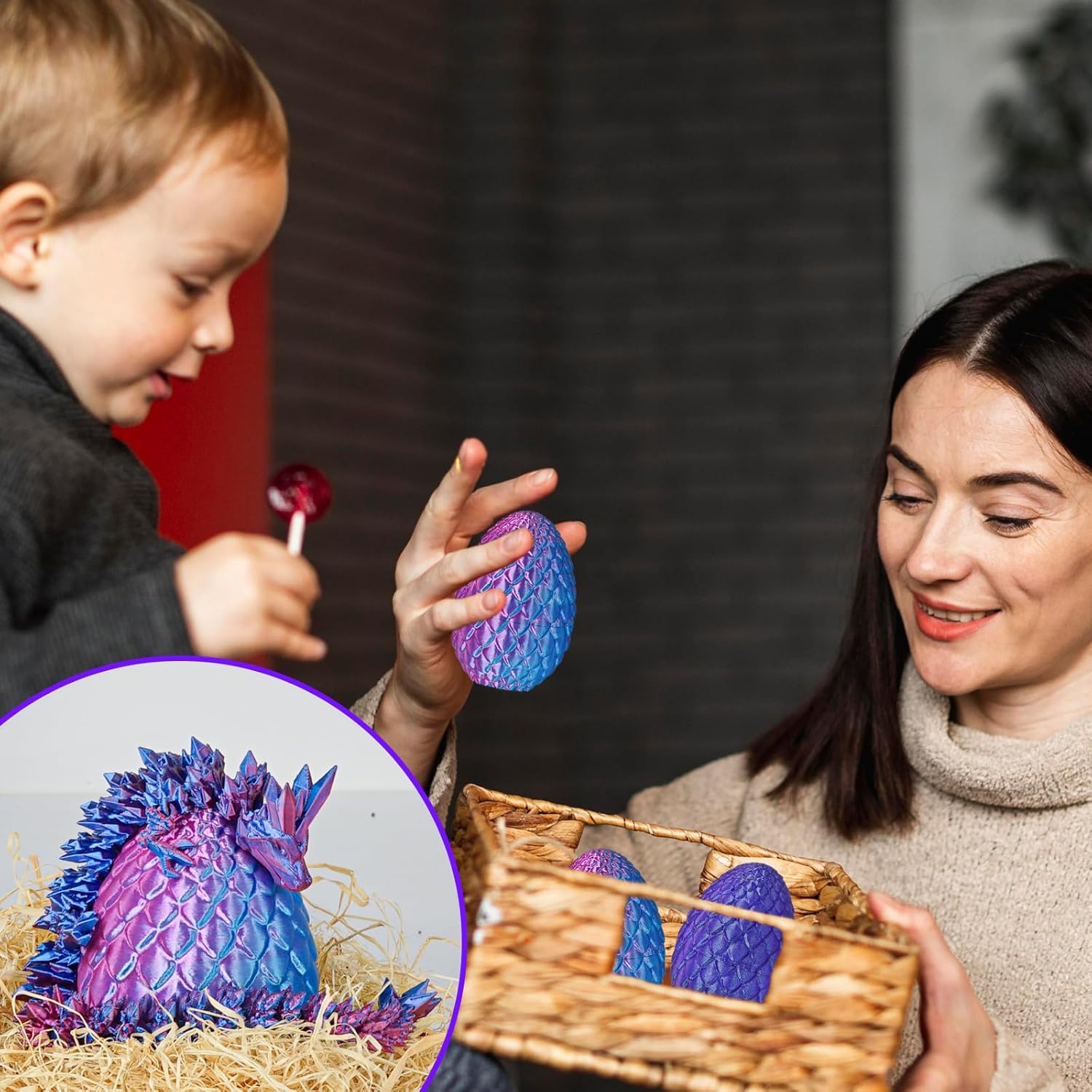 Small Dragon Eggs with Dragon Inside, 3D Printed Surprise Funny Gifts for Kids, Articulated Dragon Fidget Toys for Adults, Executive Desk Toys Office Room Dรฉcor (Gradient Light Purple-Red)