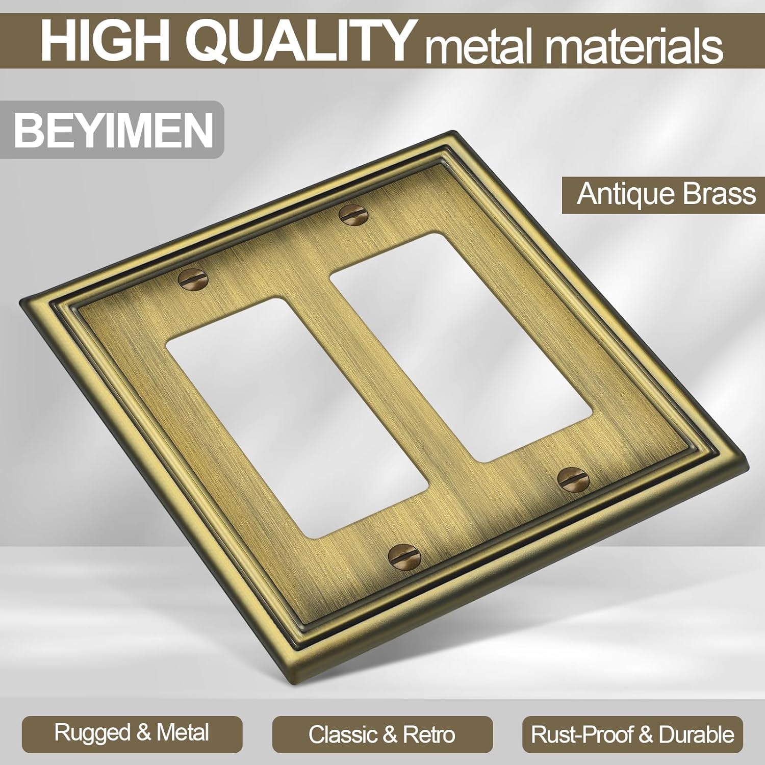 Double Decorator Switch Covers Wall Plate, Antique Brass Decorative Rocker Switch Plates Outlet Covers for Receptacle, GFCI Outlet, Dimmer - Classic Style, 3 Pack