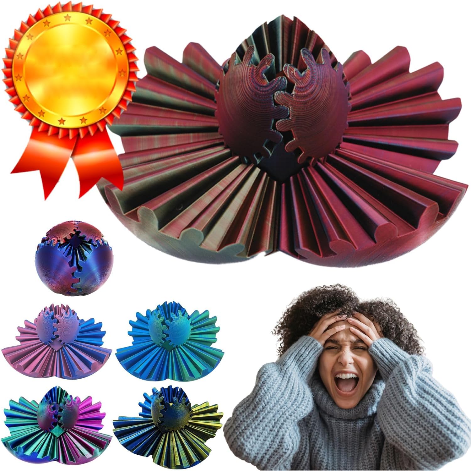 Gear Ball for ADHD 3D Printed Gear Ball Steampunk Whirling Wonder Fidget Toy Gearsphere Gear Ball for Stress and Anxiety Relaxing Fidget Ball Ideal for Sensory Needs and Autism (Laser Yellow Red Blue)