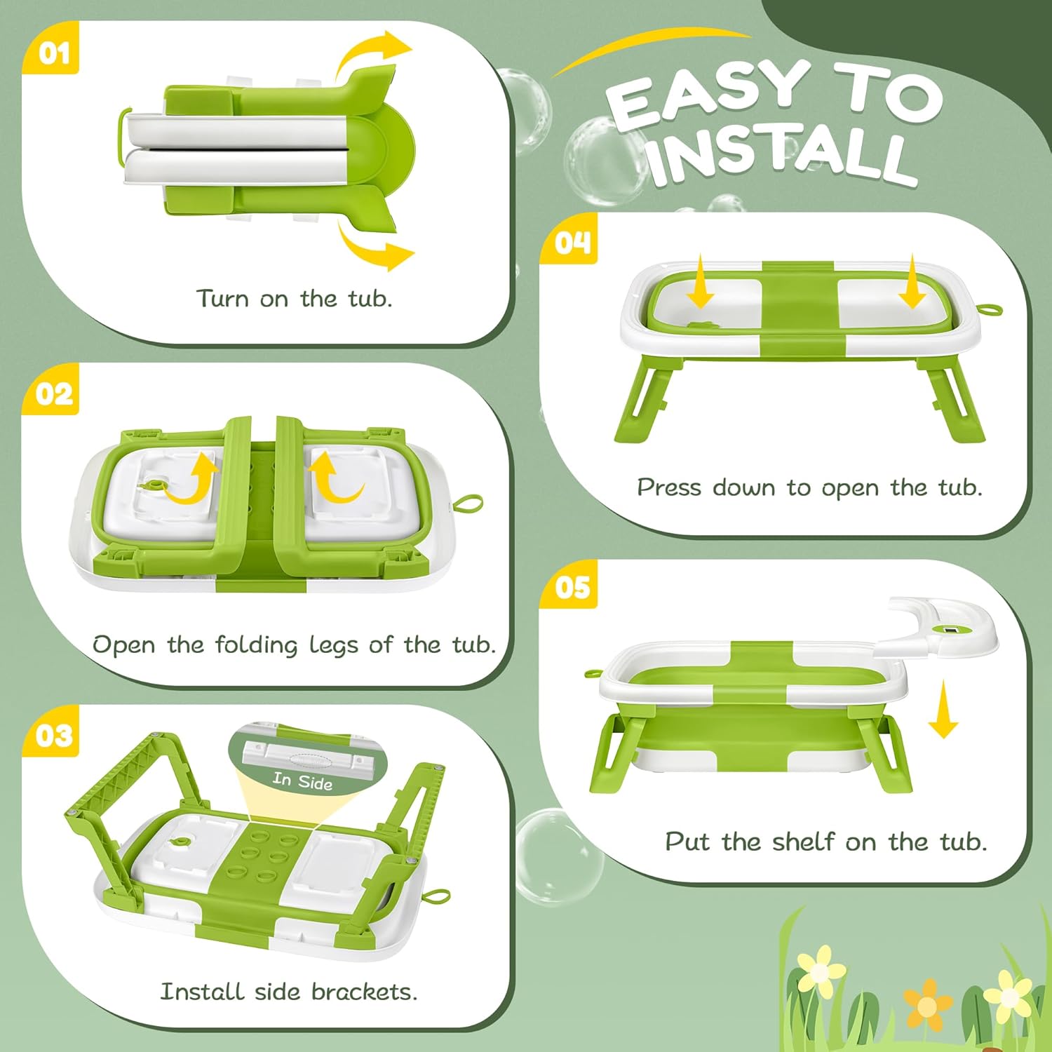 Collapsible Baby Bathtub,Baby Bath Tub with Thermometer & Soft Cushion,Baby Bathtub for Newborn to Toddler 0-36 Months,Portable Travel Baby Tub with No-Slip Feet,Baby Shower Gifts,Green