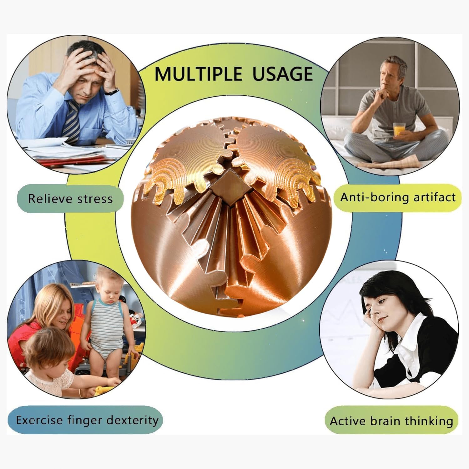 - 【3d Printed Gear Ball】The spin ball is an innovative finger toy designed to provide stress relief and anxiety reduction effects. GearSphere - The Steampunk Whirling Wonder Fidget is made of high-quality 3d printed materials with a smooth surface and durable structure.