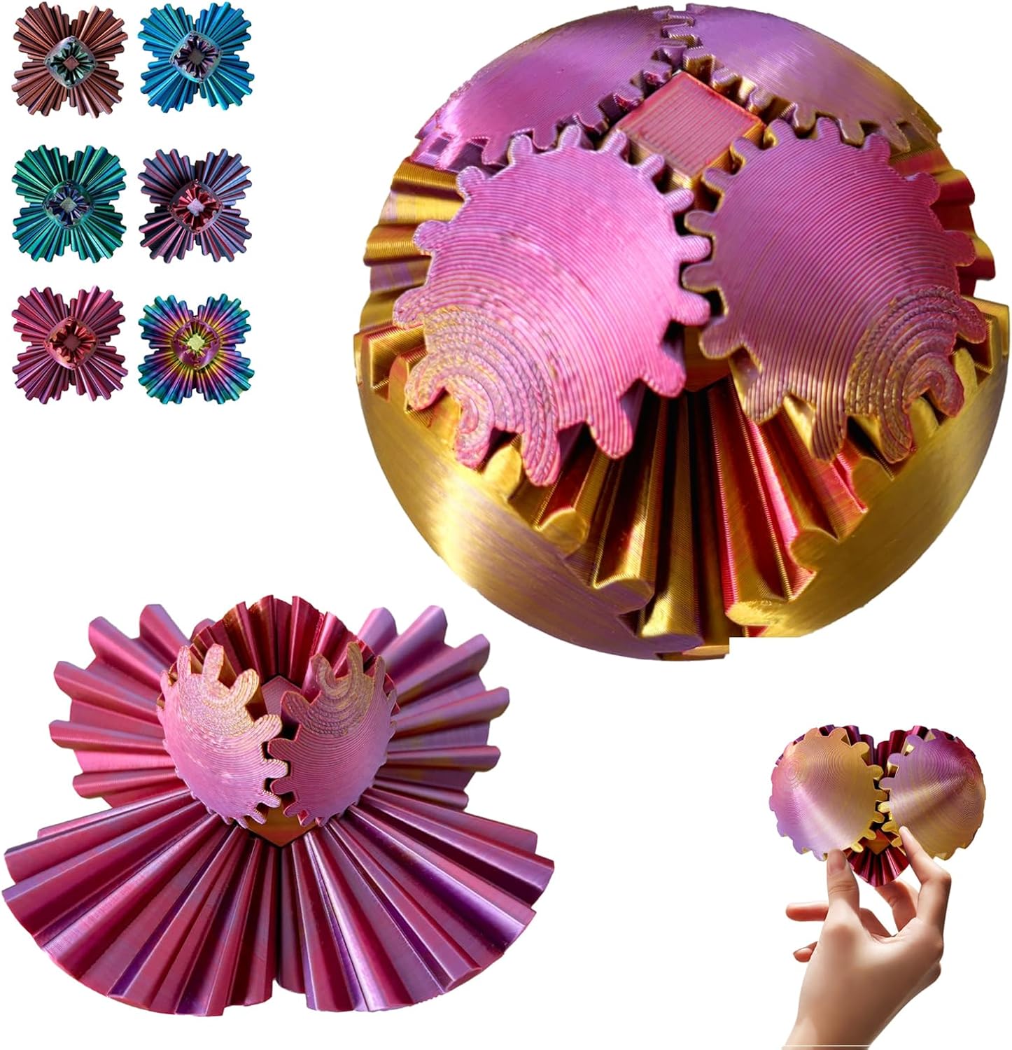 - 【Dynamic Rotation and Shape Change】This 3D printed gear ball consists of interlocking gears. The gear ball can not only rotate 360 degrees, but also display various shapes as you operate it. Whether it is touched, rotated or flipped, it can provide a unique tactile and visual enjoyment.