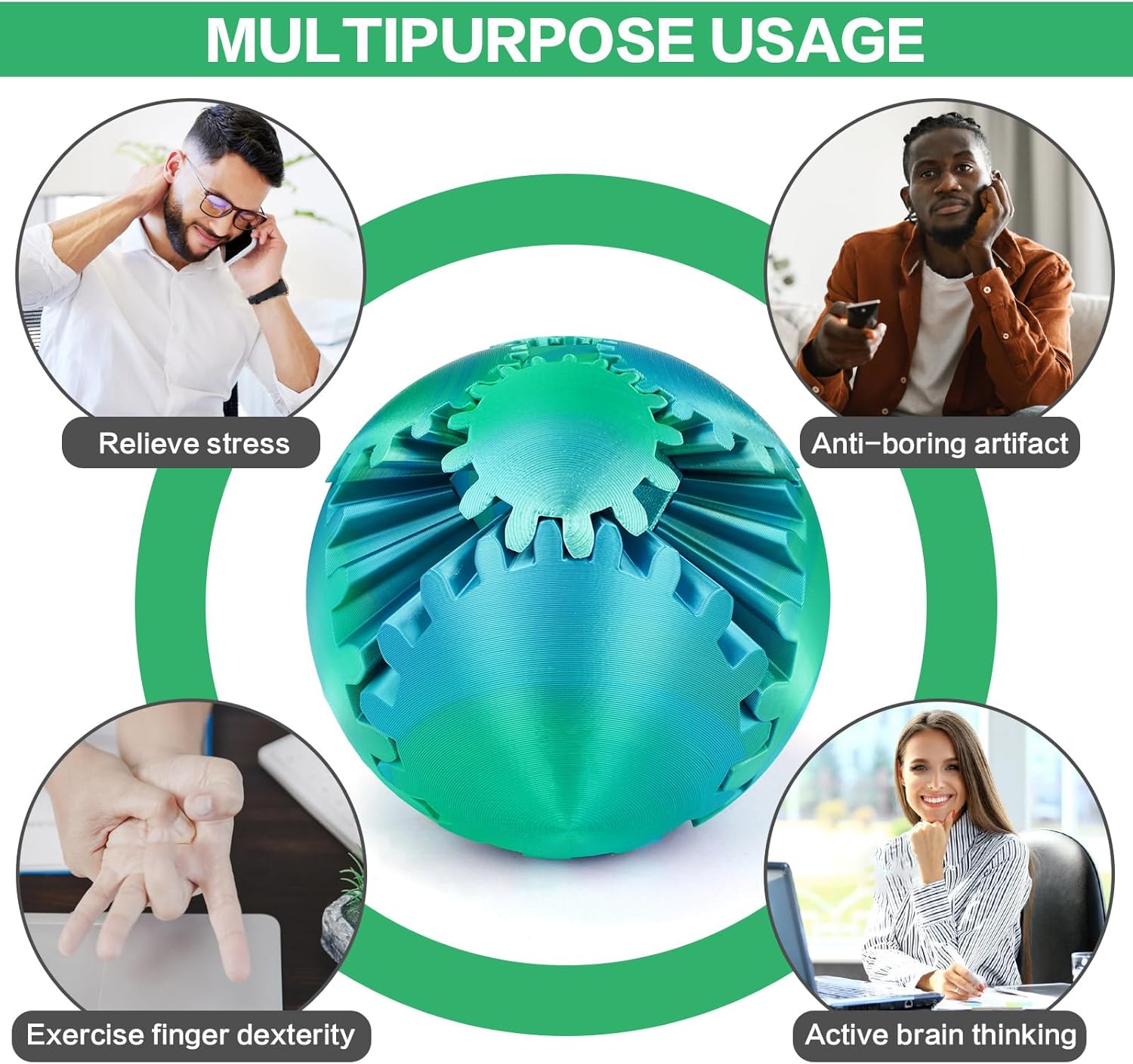 Gear Ball - 3D Printed Gear Ball Spin Ball or Cube Fidget Toy, Gear Sphere, Gear Ball Gearball Fidget Toy, Stress Ball, GearSphere Desk Toy, Fidget Ball, Gear Toy for Stress and Anxiety Relaxing
