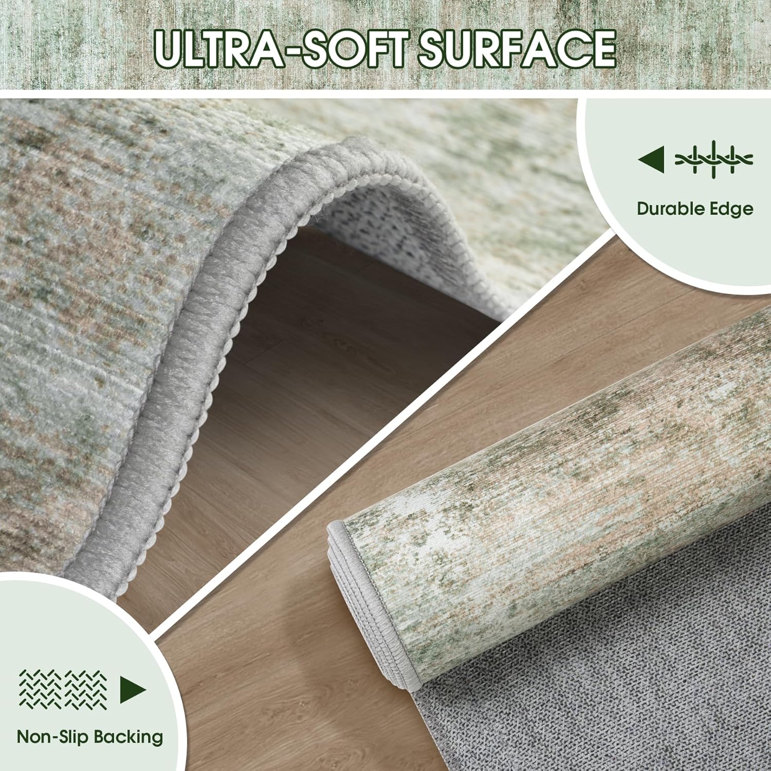Washable Modern Abstract Kitchen & Hallway Runner Rug, 2'6''x8', Green with Non-Slip Backing