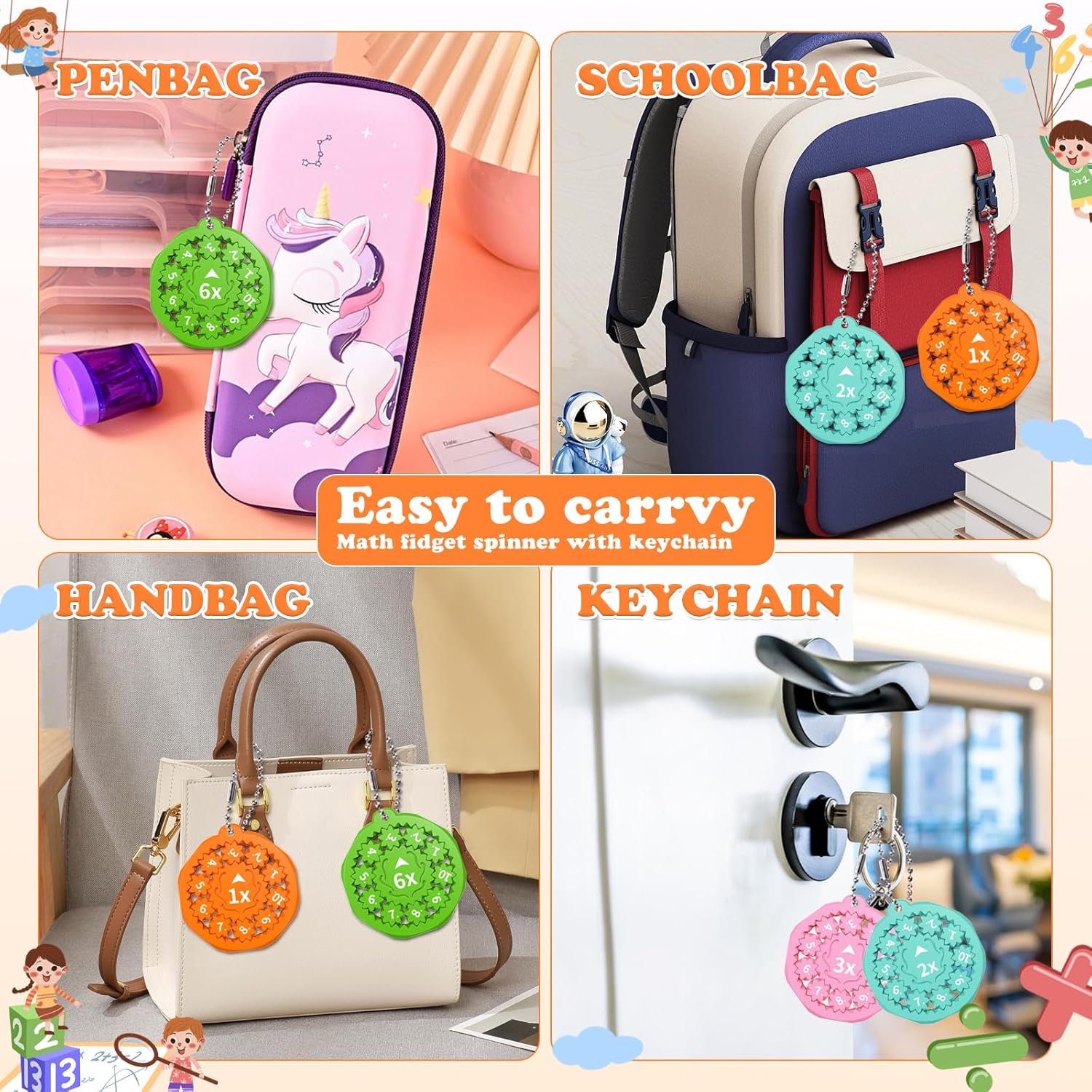 - 【Portable Spinner&Keychain】Our fidget spinner toys are not only compact and highly portable but also feature the advantage of being compatible with keychains. This allows them to be easily attached to backpacks, bags, or carried alongside keys, ensuring that children can engage in math learning conveniently at home, in transit, at school, or wherever they go. With our portable math fidget spinners, every moment and place becomes an enjoyable opportunity for interactive math exploration!