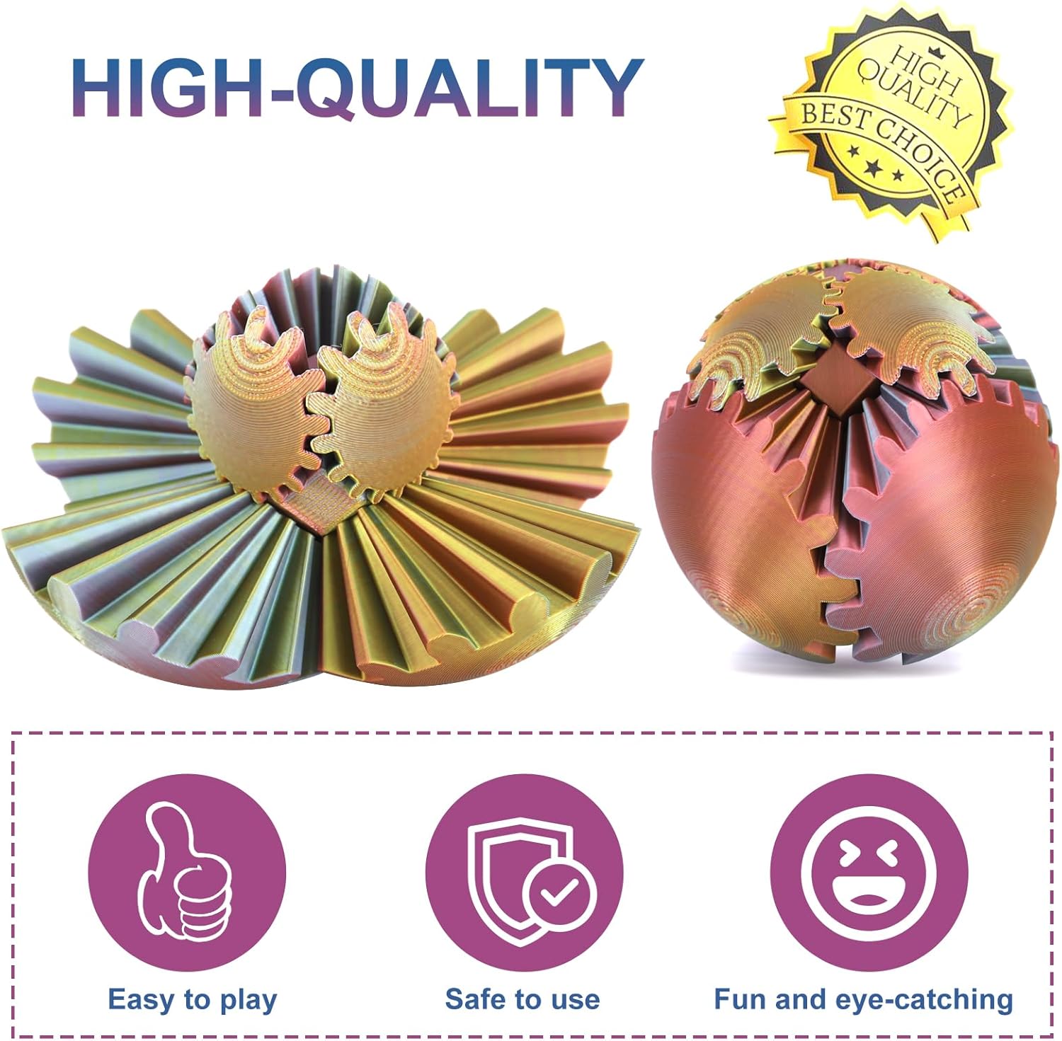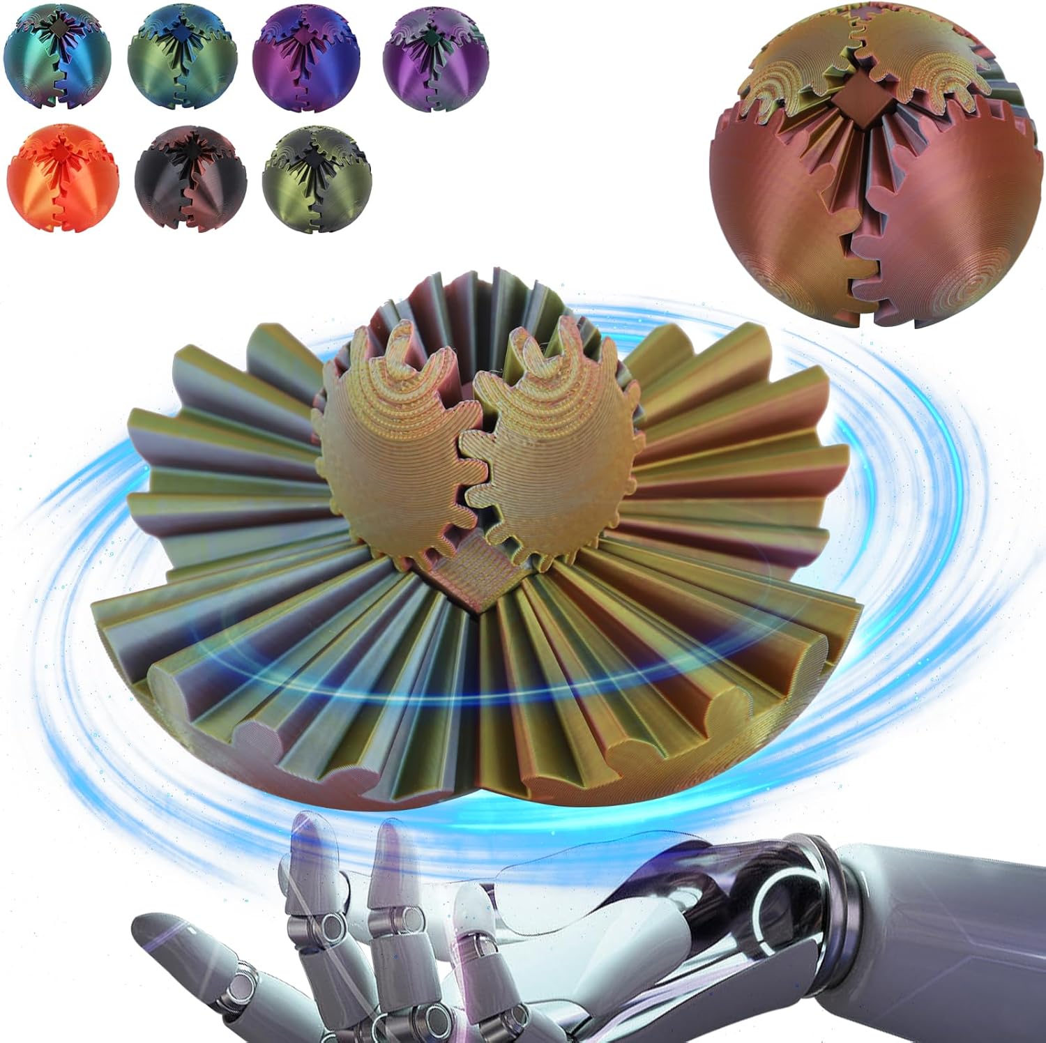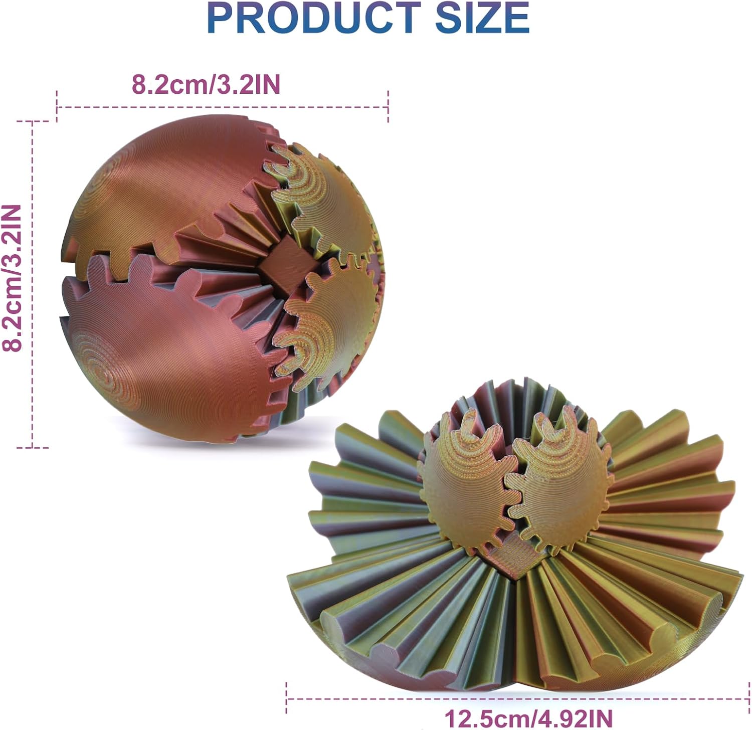- 【3d Printed Gear Ball】The gear ball features a complex array of interlocking gears that turn, twist, and articulate with a simple flick of your fingers. It's like holding a mini engineering marvel in your hand!