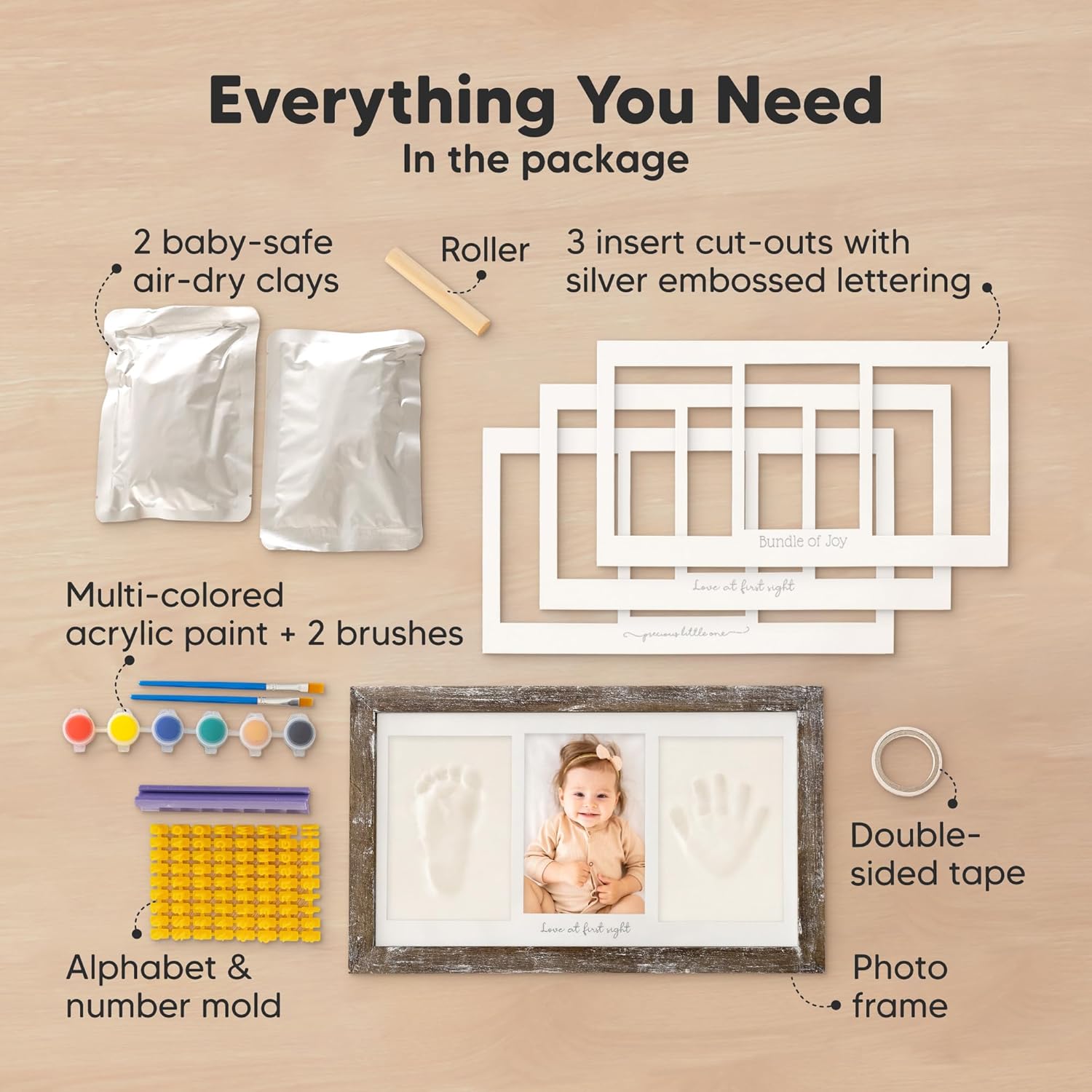 Baby Hand and Footprint Kit - Clay Handprint Keepsake Frame, Newborn Nursery Picture Frame, Personalized New Mom Gifts for Baby Shower & Registry (Barnwood)