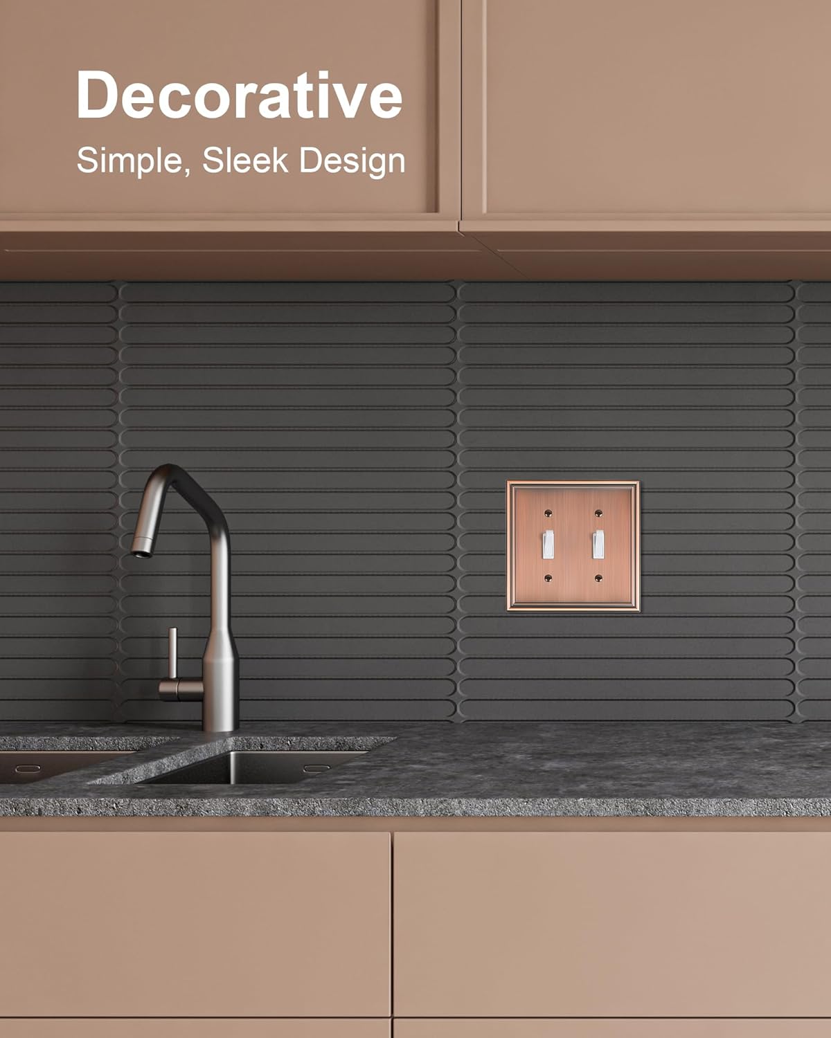 - Timeless Appeal - The double light switch cover plate features simple, clean lines and a sleek, modern design. Antique copper finish adds a touch of warmth and elegance to any space, creating a sophisticated yet stylish ambiance that enhances the overall aesthetic of any room.