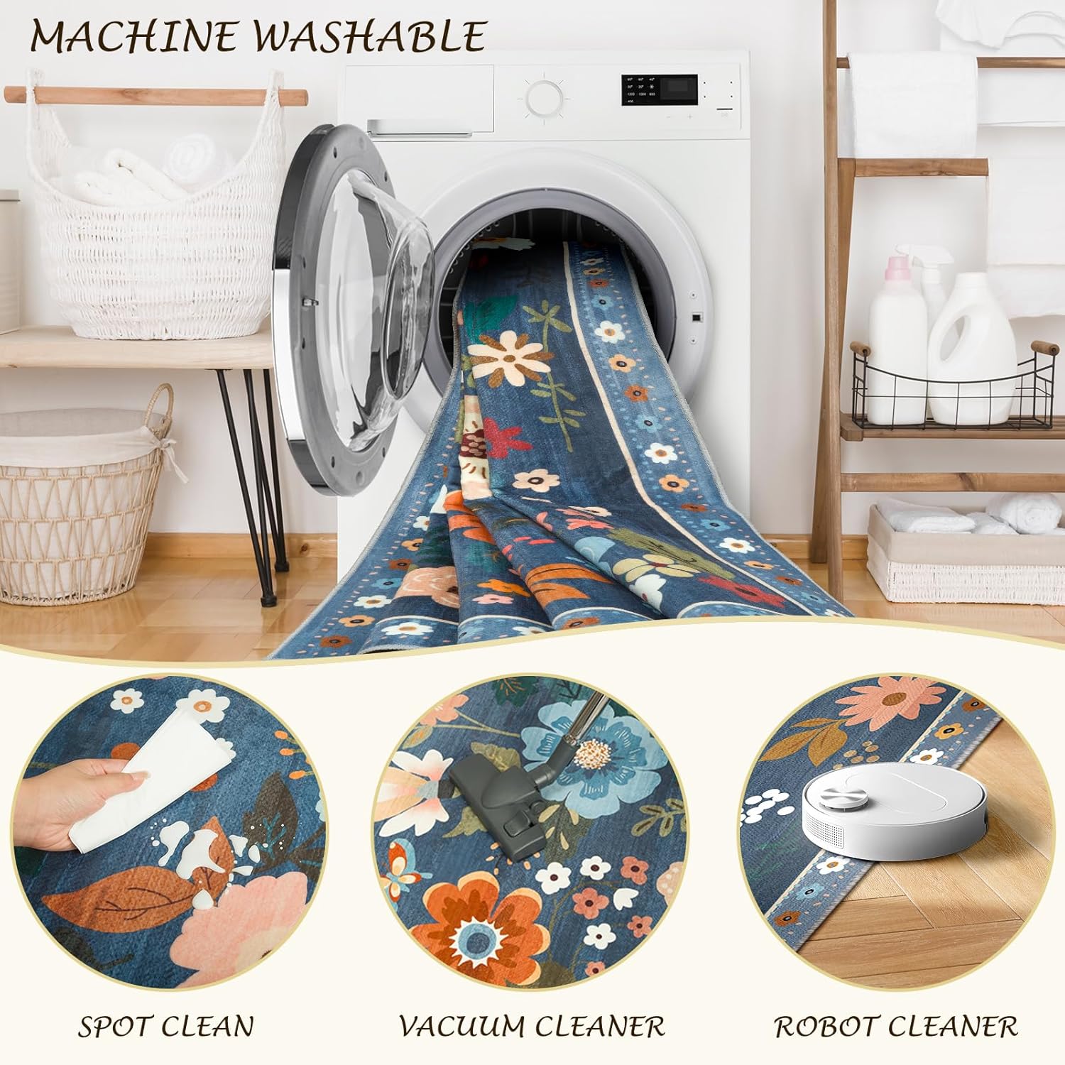 - Machine Washable:The bedroom rugs are machine washable,allowing for both machine wash and hand wash options.It is recommended to wash them in cold water.This floral rug is crafted with a low pile that won’t block opening and closing doors, make machine wash possible.Small stains can be blotted with a rag,soft-bristled brush,vacuum,or robotic vacuum cleaner.Avoid using bleach and high-temperature ironing