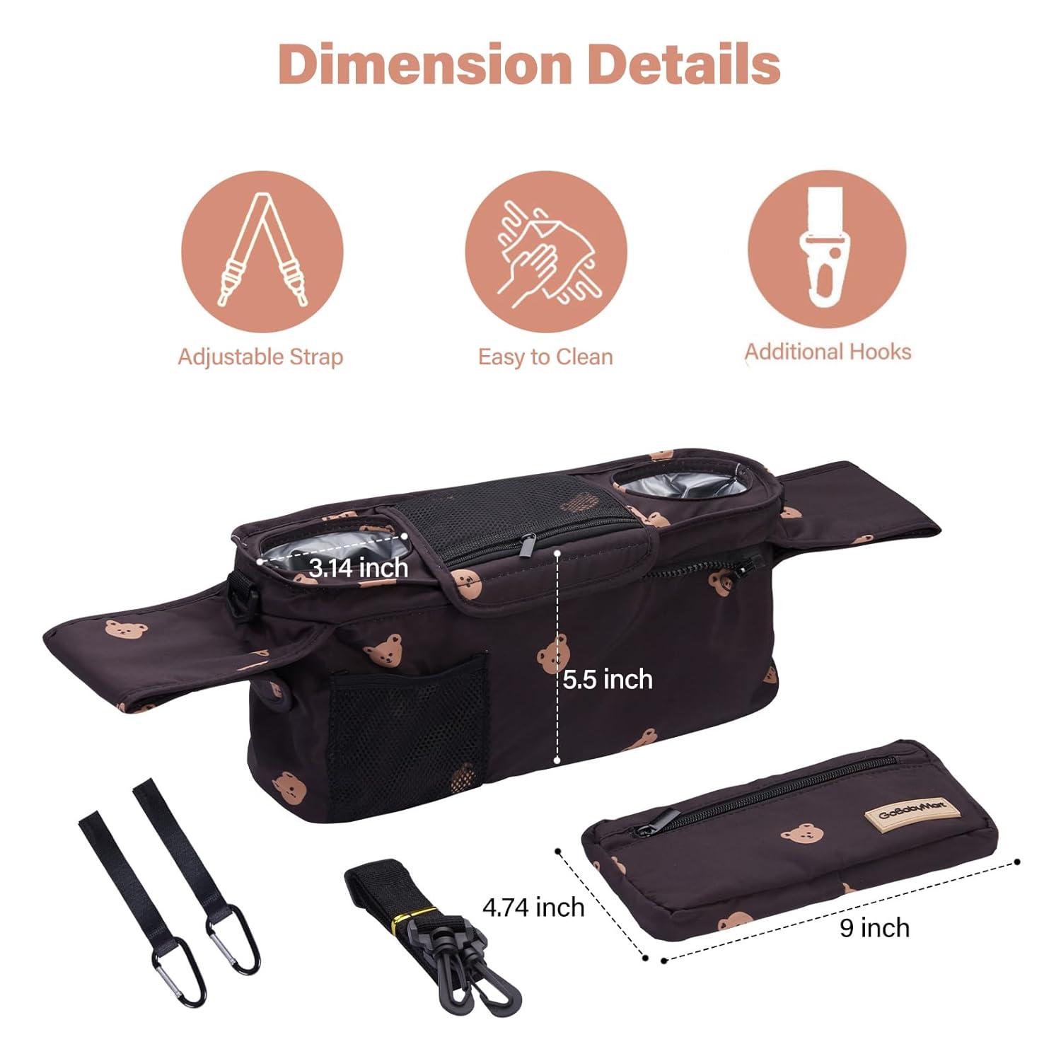 - Multi-Use & Detachable Design – 3-in-1 Functionality: Use as a stroller caddy, shoulder diaper bag with included strap, or detach the wristlet for quick errands or diaper changes.