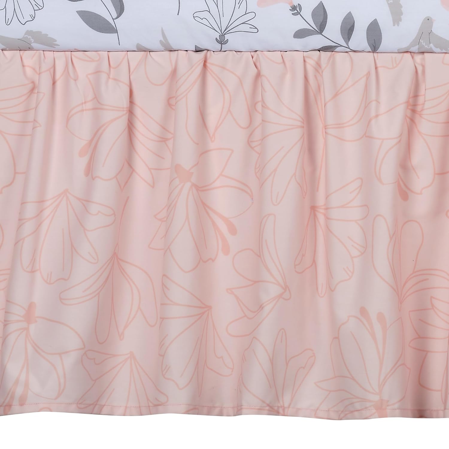 - Petal pink crib skirt with outlined flowers with a 14 ½” drop