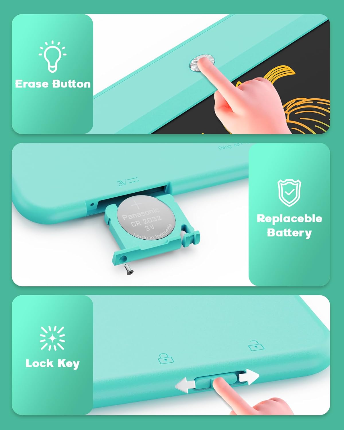 - PORTABLE AND DURABLE: Drawing tablets for kids is made of durable plastic, plus round corner design, anti-fall and anti-shock, no need to worry kids drop it. The drawing tablet weights only 150 grams, easy to carry, place in school bags, handbags, travel bags.