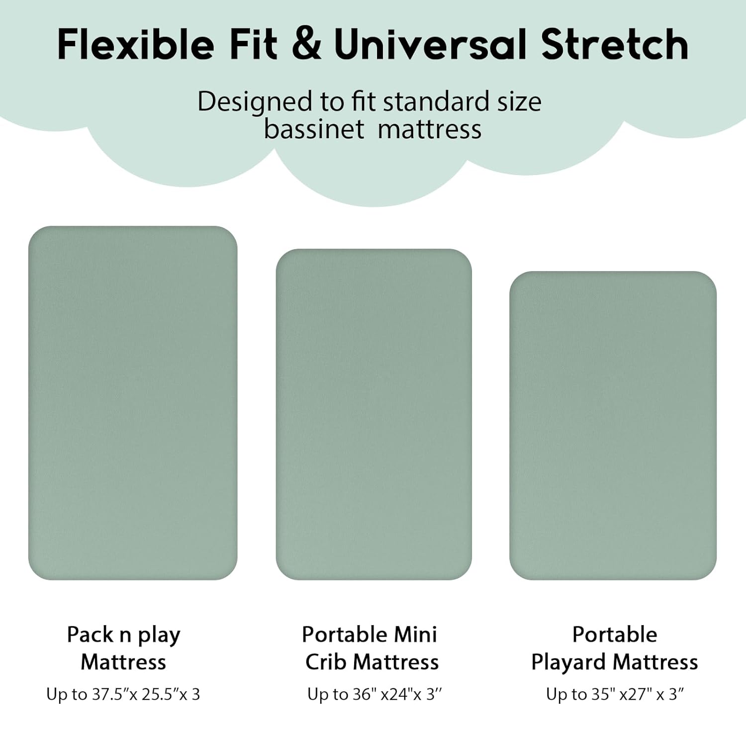 - INSTALL IN SECONDS: Each item is enchased with a full elastic band making the pack and play sheets easy to put on and off your pack n play mattress. The durable band around the entire edge keeps playard sheets safely in place and prevent slipping away when sleeping, so you don't need to adjust the mini crib sheet frequently!